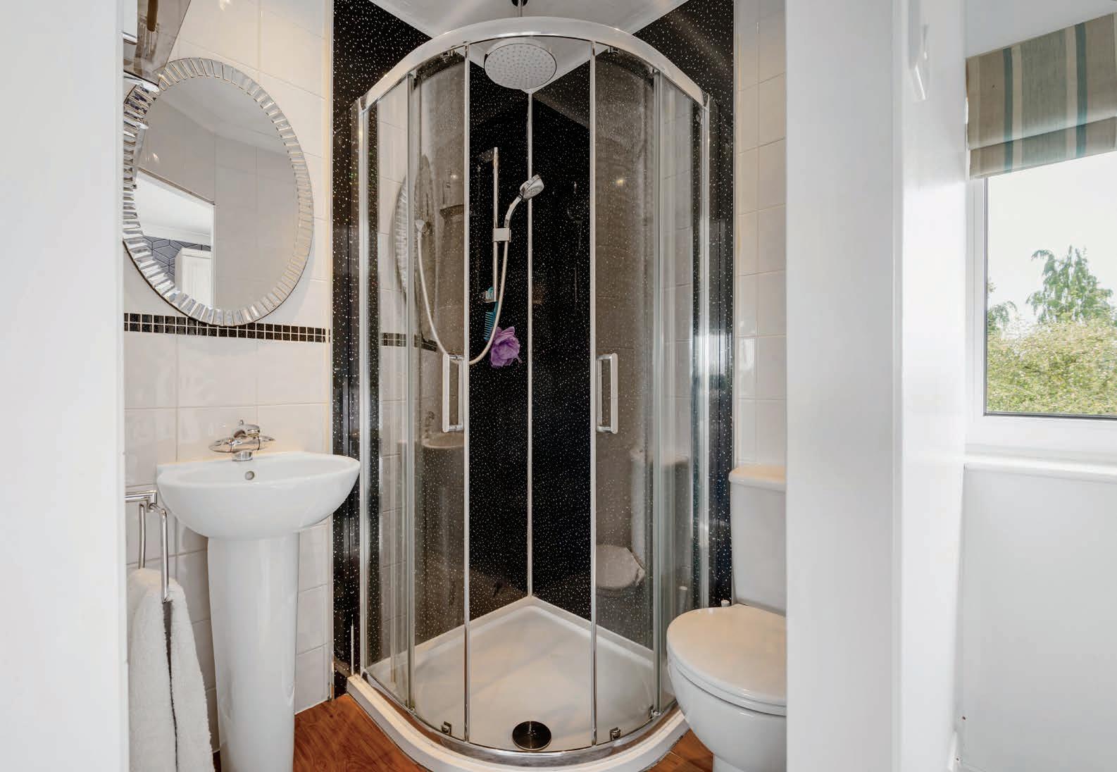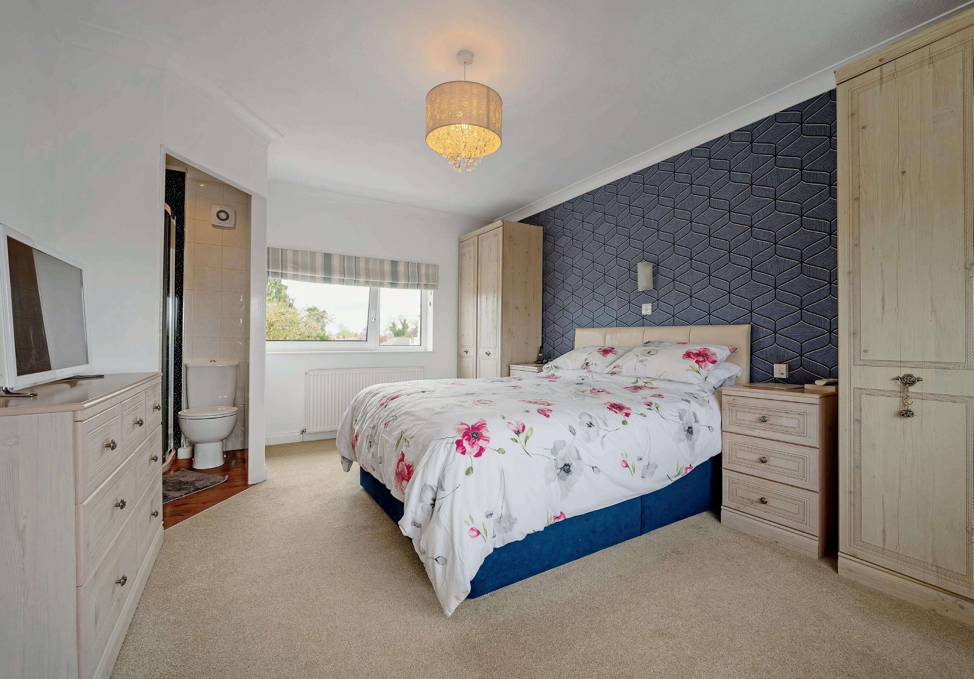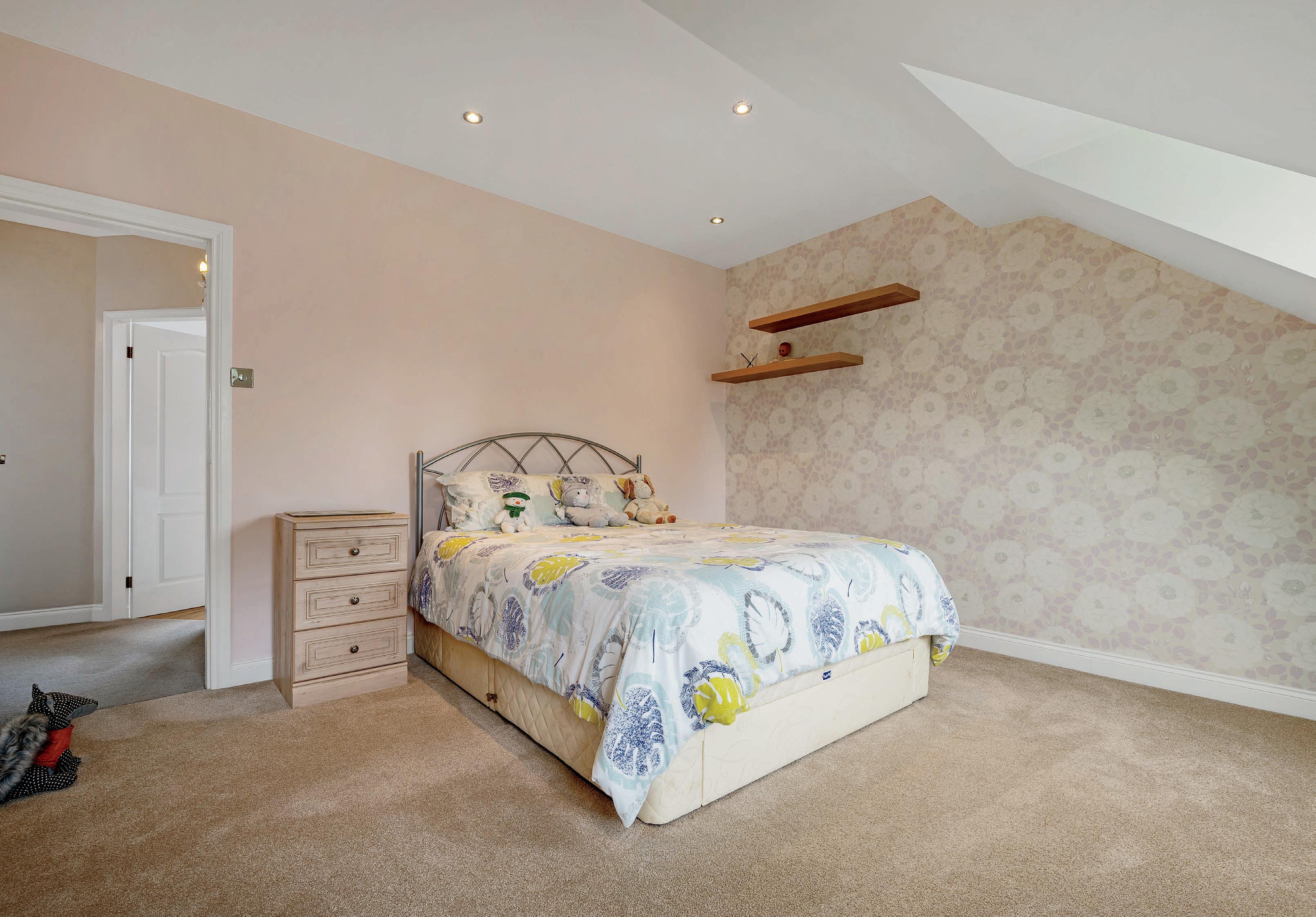 Ascend the staircase with its stylish glass balustrade and oak rail to discover four well-appointed bedrooms and a family bathroom. The modern family bathroom is adorned with a contemporary white four-piece suite, including a double shower cubicle, vanity unit with an inset sink, WC, and bath, complemented by Karndean flooring. The master bedroom features an en-suite shower room with a corner shower cubicle, wash hand basin, and WC. Bedrooms two and four are equipped with fitted wardrobes. The landing hosts two storage cupboards, one housing the Worcester boiler, while three additional bedrooms complete this level, two offering built-in wardrobes.