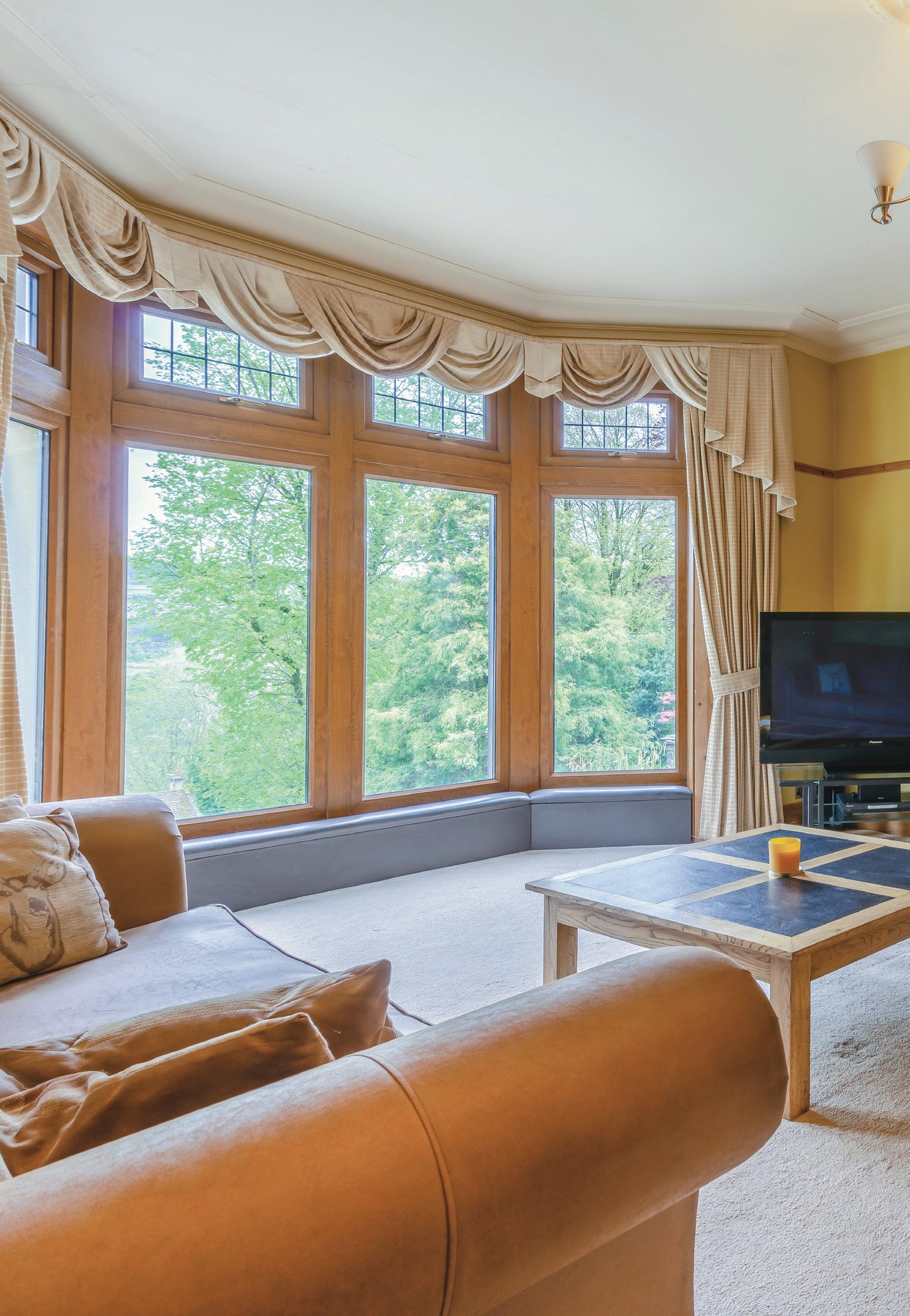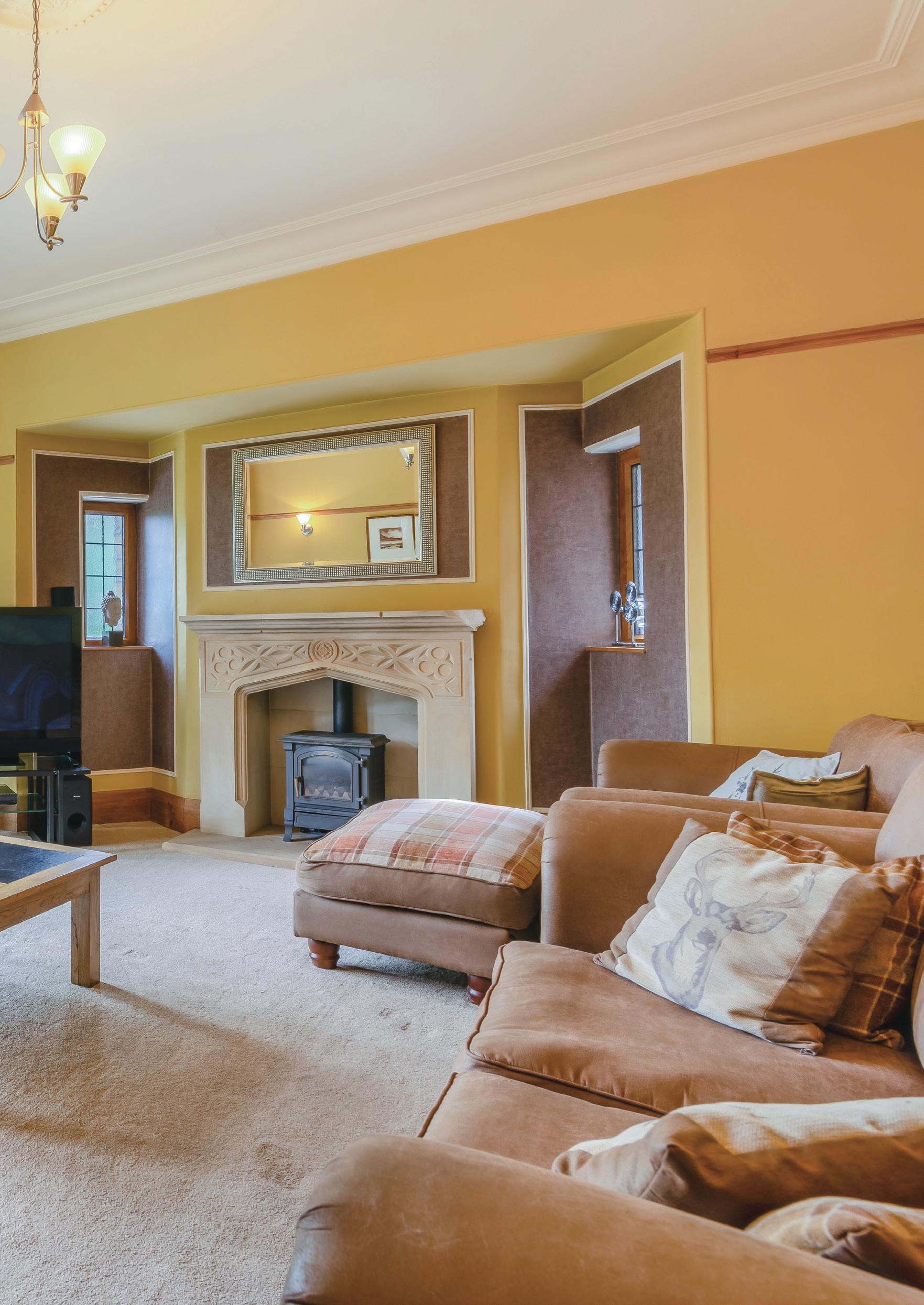The lounge offers exceptional proportions, has a beautiful Stone mullioned bay window inviting tremendous levels of natural light indoors, commanding a delightful outlook not only over the gardens but across the valley. Retained period features include coving to the ceiling, a picture rail and deep skirting boards. There is a feature Stone fireplace to the chimney breast, which is home to a living flame gas stove, which sits on a stone flagged hearth. The chimney breast has frosted windows to either side.