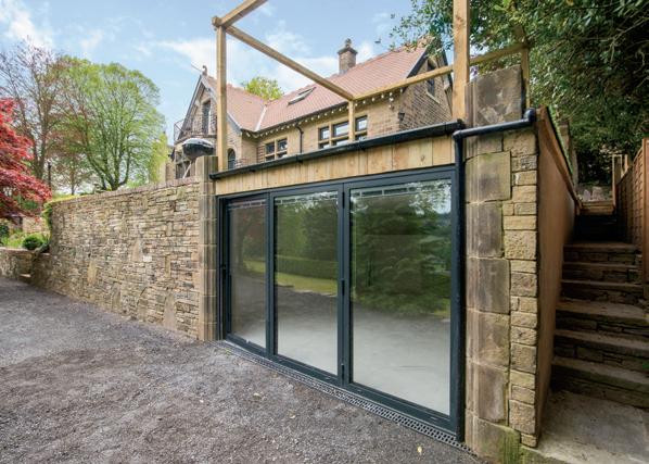 Open plan access is gained to the garden / family room which has a Yorkshire stone flagged floor, with inset rustic brick detailing. A stunning brick-built chimney breast built from reclaimed material, is home to a wood burning stove and has windows to either side. Two sets of sliding doors open directly onto a south facing terrace, inviting the outdoors inside whilst capturing amazing views across the valley. A bespoke staircase gains access to the first-floor accommodation to this section of this home.
