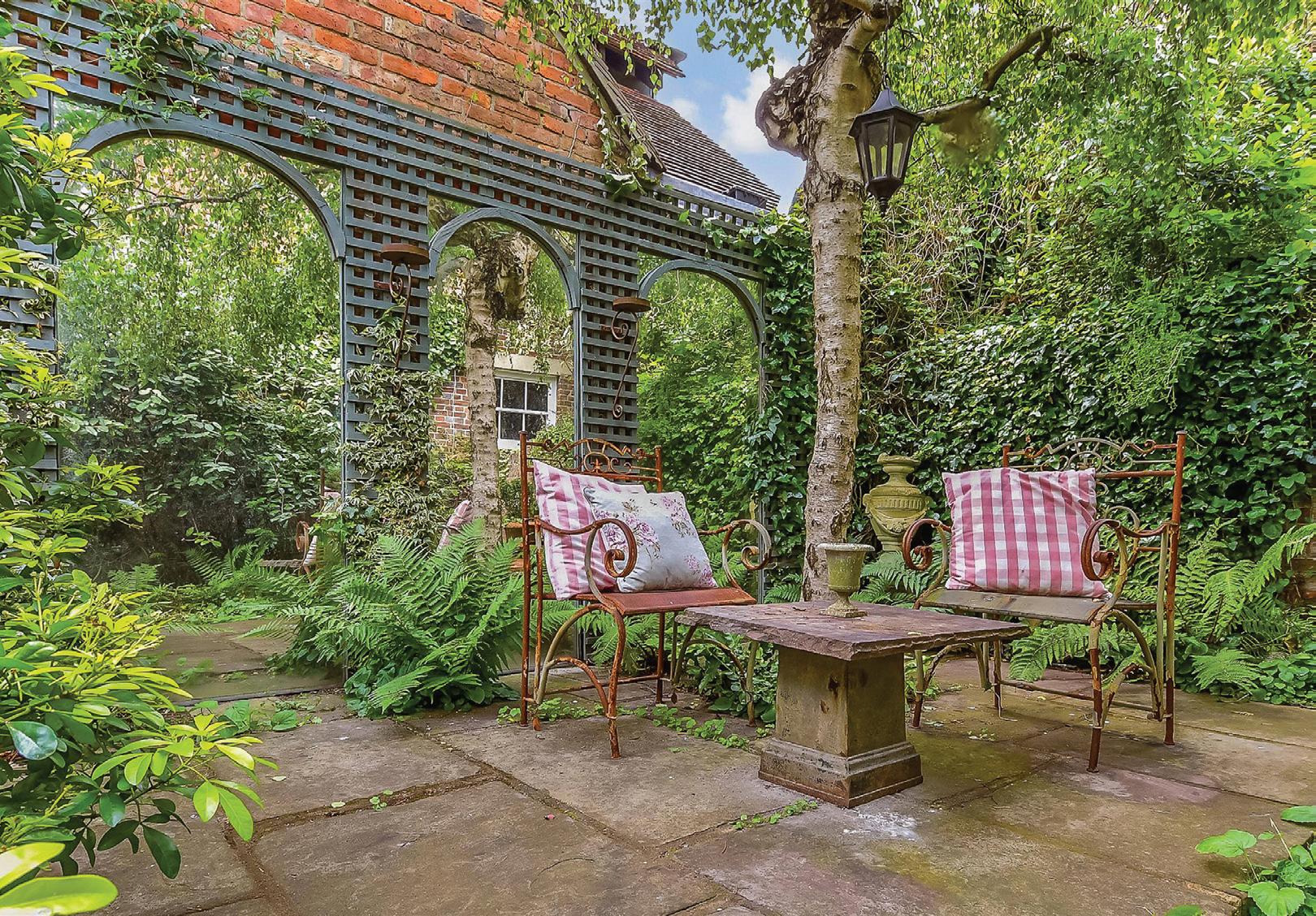 The garden is full of little nooks and crannies and private seating areas including the rear courtyard garden. It is surrounded by trees and shrubs and designed for al fresco dining and has steps that lead up to another quiet seating area. An arch and steps, flanked by trees and shrubs leading down to a shady patio with a central tree and a fascinating mirrored wall and round to the front garden with its wide south facing terrace that is ideal for a spot of sunbathing. There is a good sized lawn surrounded by high trees and shrubs providing privacy and security.