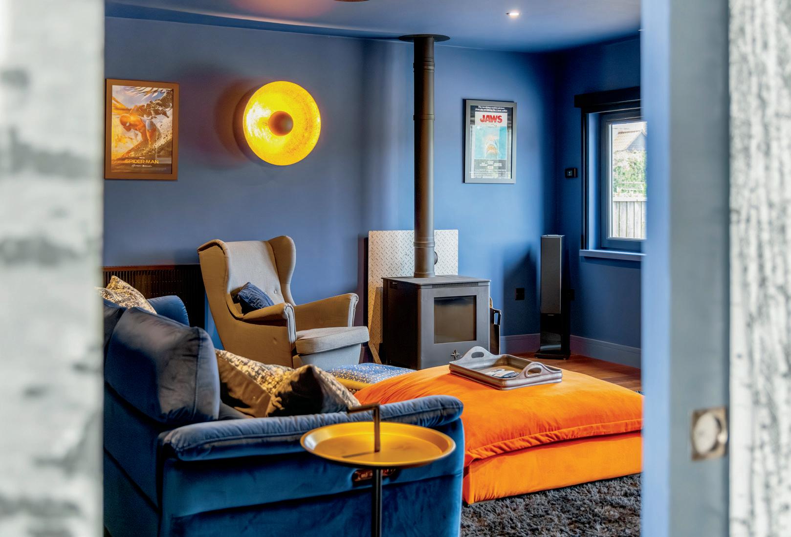“The whole of the main house, upstairs and down, has underfloor heating run from an air source heat pump. The hallway and multi-media living room have modern efficient Sunflow electric radiatiors. There’s also a pellet-burning stove if you want a cosy focal point, and the integrated cinema screen and blackout blinds make it a great place for all the family to watch a film together. Other equipment for this is available under separate negotiation. At the back of the room, a wide concertina wood panelled door folds back to reveal an office area so the room is extremely versatile.”