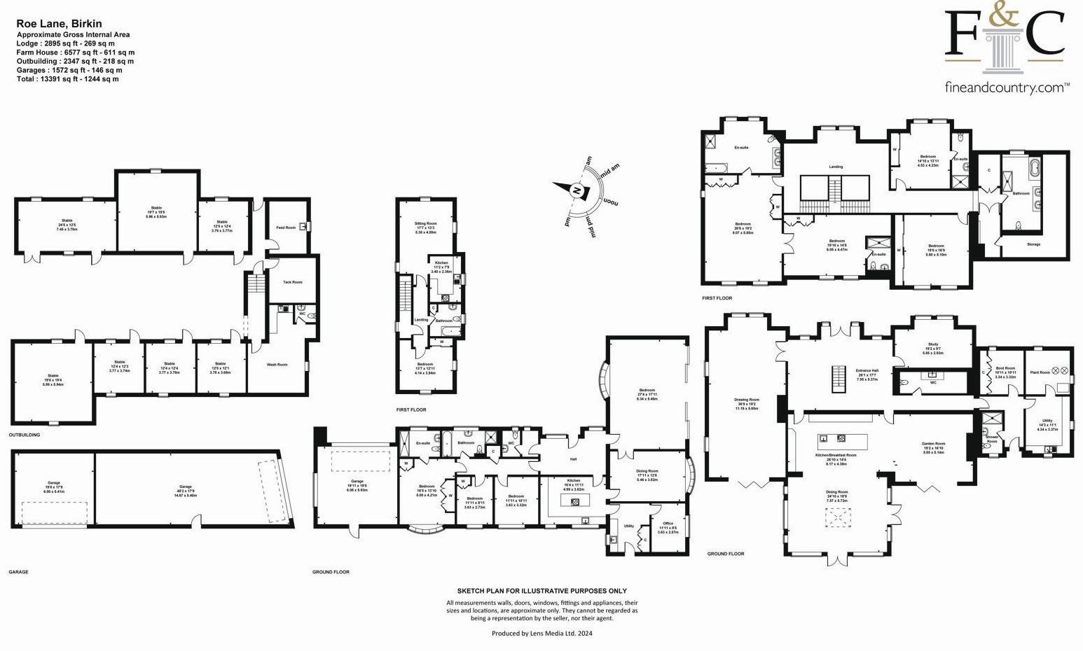 Home Farmhouse, paired with the newly renovated Birkin Lodge, offers extensive, versatile, and glamorous living spaces, ideal for both intimate family gatherings and large-scale entertaining. Extensive outbuildings and stables provide opportunities for business ventures or additional accommodation, making it ideal for multi-generational living. This remarkable property is ready for immediate occupancy.