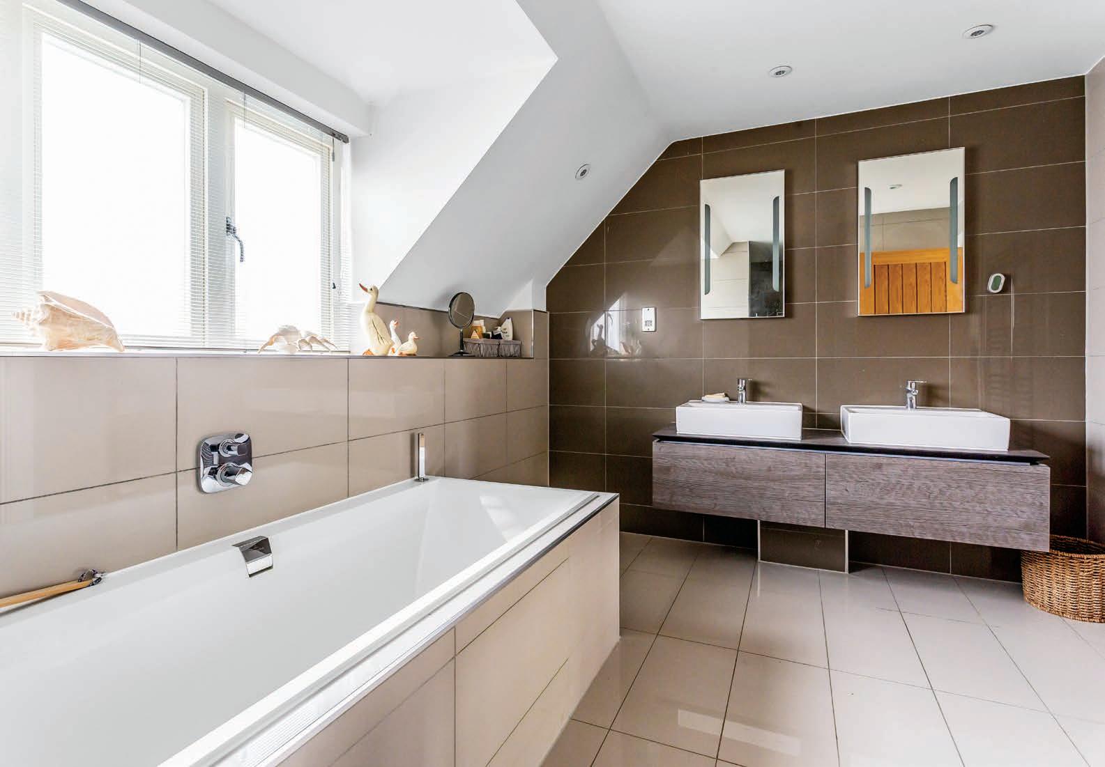 As you step inside, you’re greeted by a sense of spaciousness and luxury. The heart of this home is the stunning kitchen, designed for both functionality and style. Featuring top-ofthe-range Miele ovens, a microwave and heated drawer, plus a Sub Zero large fridge and wine fridge, this kitchen is a culinary enthusiast’s dream. The adjoining utility room offers additional convenience and storage.