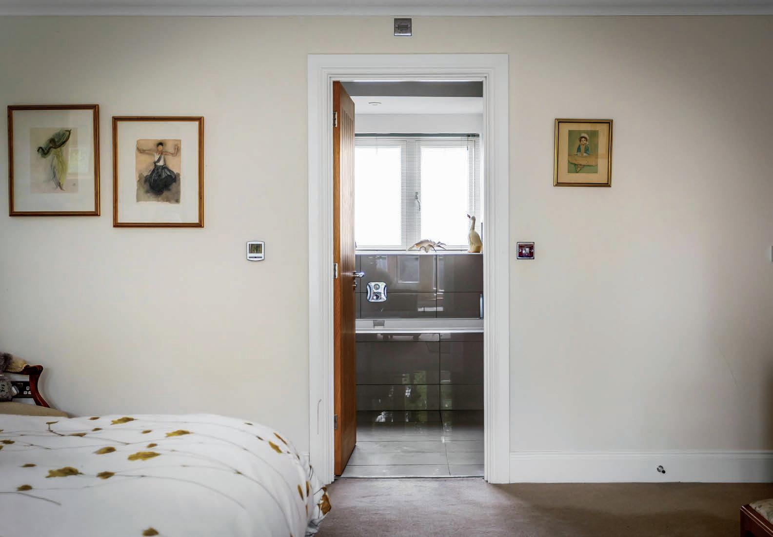 Upstairs, the first floor houses a luxurious master suite, which includes a west-facing bedroom with an ensuite bathroom, a walk-in dressing room, and a private balcony overlooking the beautifully landscaped garden. Two additional double bedrooms on this floor, each with its own ensuite bathroom, giving you ample space for family and guests.