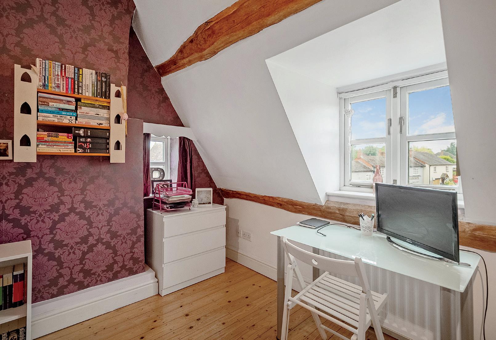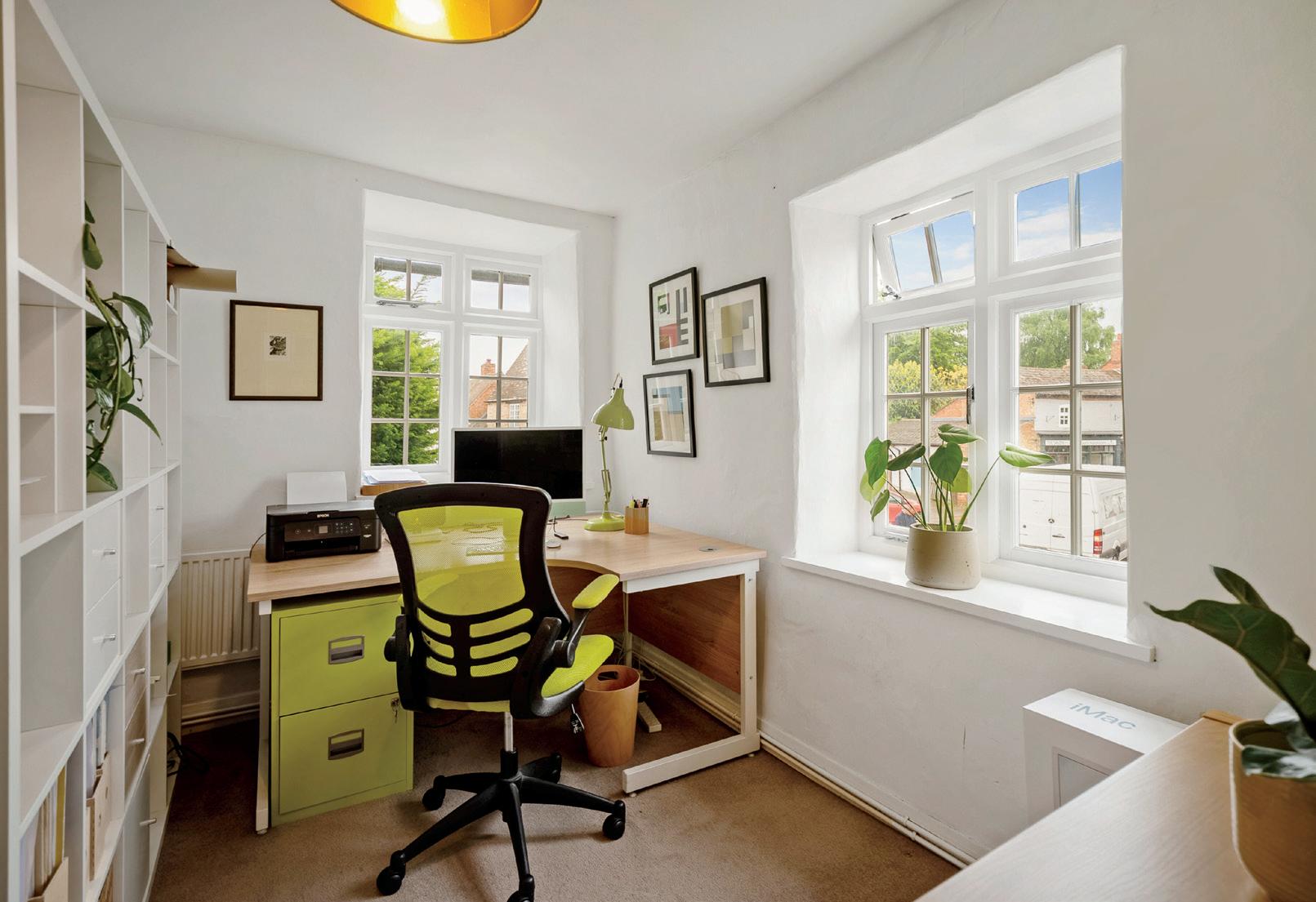 From the central staircase, on this floor there are three good-sized bedrooms. The Principal bedroom has built-in wardrobes and the current owners use one of the bedrooms as an office. The family bathroom has a bath with shower over and views over the beautiful landscaped garden and Harbury windmill at the rear of the property.