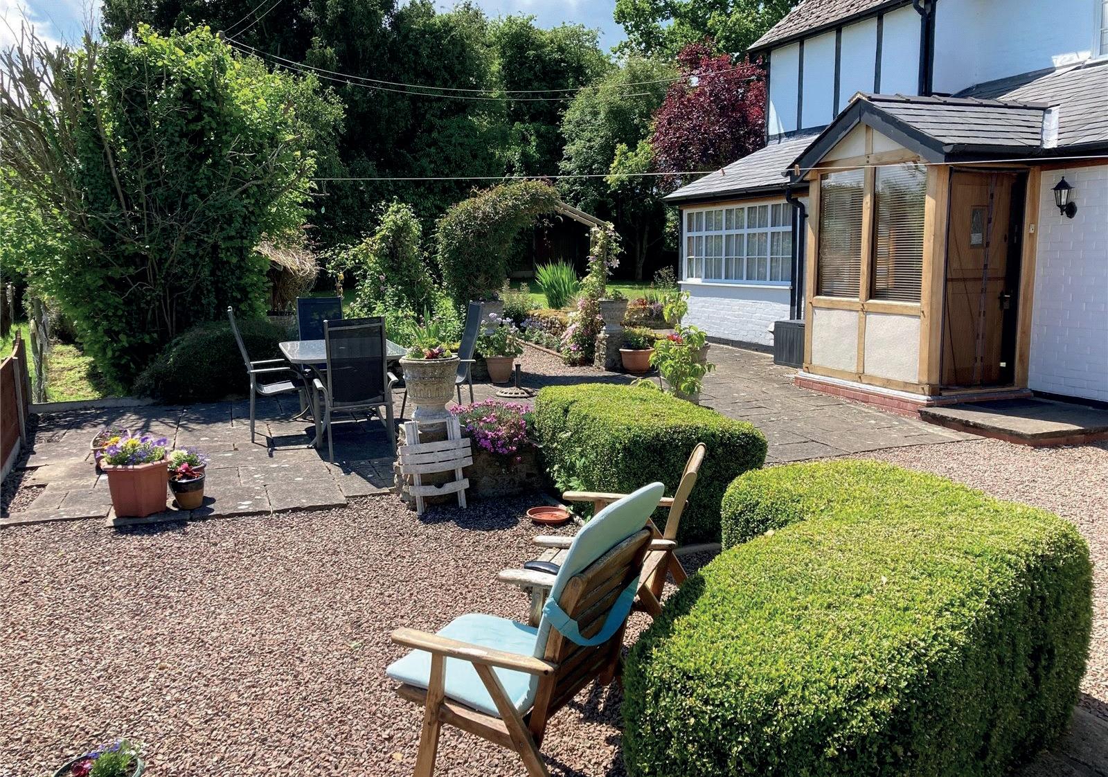 The owners have maintained the country garden feel of the house garden. It is a delightful mix of lawn, mature plants and shrubbery. They have also created several gravelled sitting areas offering sun or shade at different times of day and season. A particular favourite is the ‘white wine patio’ to the lane side of the house where they can enjoy an evening glass of wine and perhaps chat with the occasional passerby.