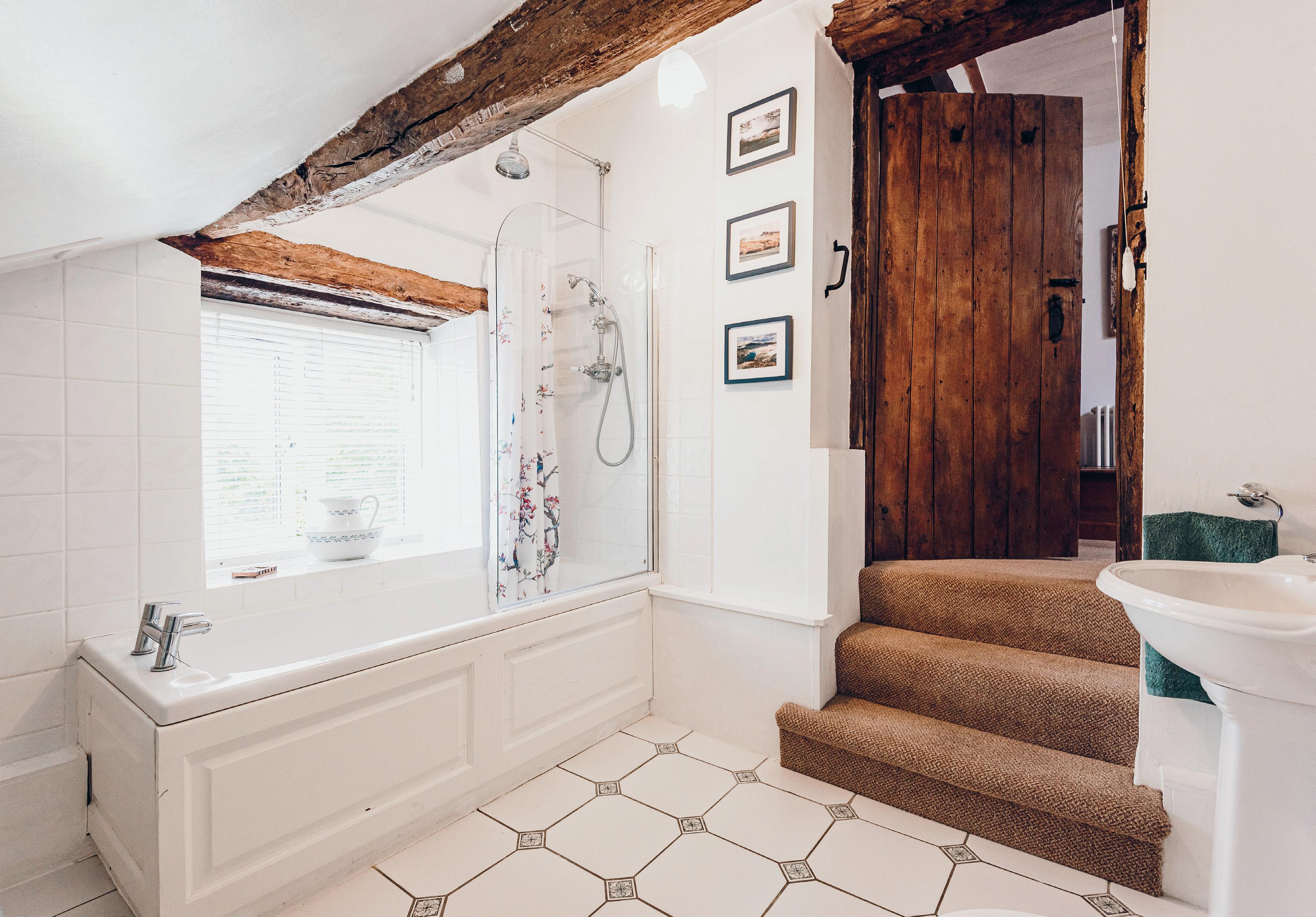 Split level with window to rear aspect and Juliet balcony overlooking the gardens. Exposed timbers.
