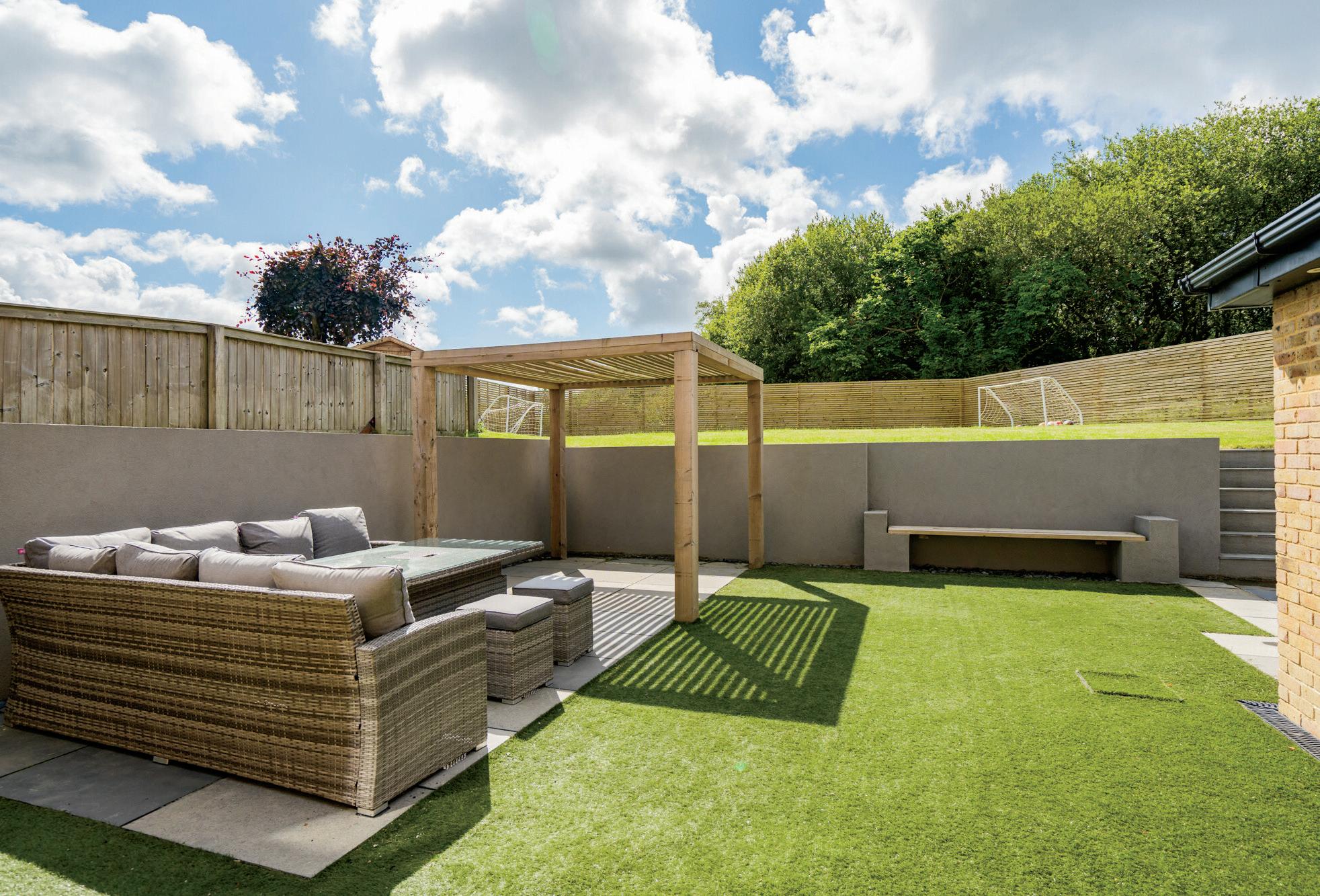 Step into the delightful garden, thoughtfully designed across two tiers for easy maintenance. Here, you’ll find a lovely mix of paved patio areas, lush green lawn, and an impressive fire pit area that sets the stage for entertaining guests. The entire garden is enclosed with fencing, ensuring a safe and secure environment for children and pets to roam freely. Thanks to the convenient bi-folding door from the family area, there’s a seamless connection between the garden and home, allowing for effortless indoor-outdoor living. A paved pathway gracefully guides you around the entire circumference of the home, providing easy access to every corner of this charming outdoor oasis.