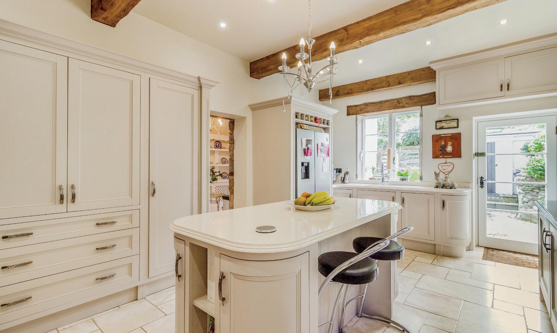 Back into the inner hall and through a delightful breakfast area boasting a built-in Welsh dresser and you’ll find an exposed stone doorway into the stunning kitchen.