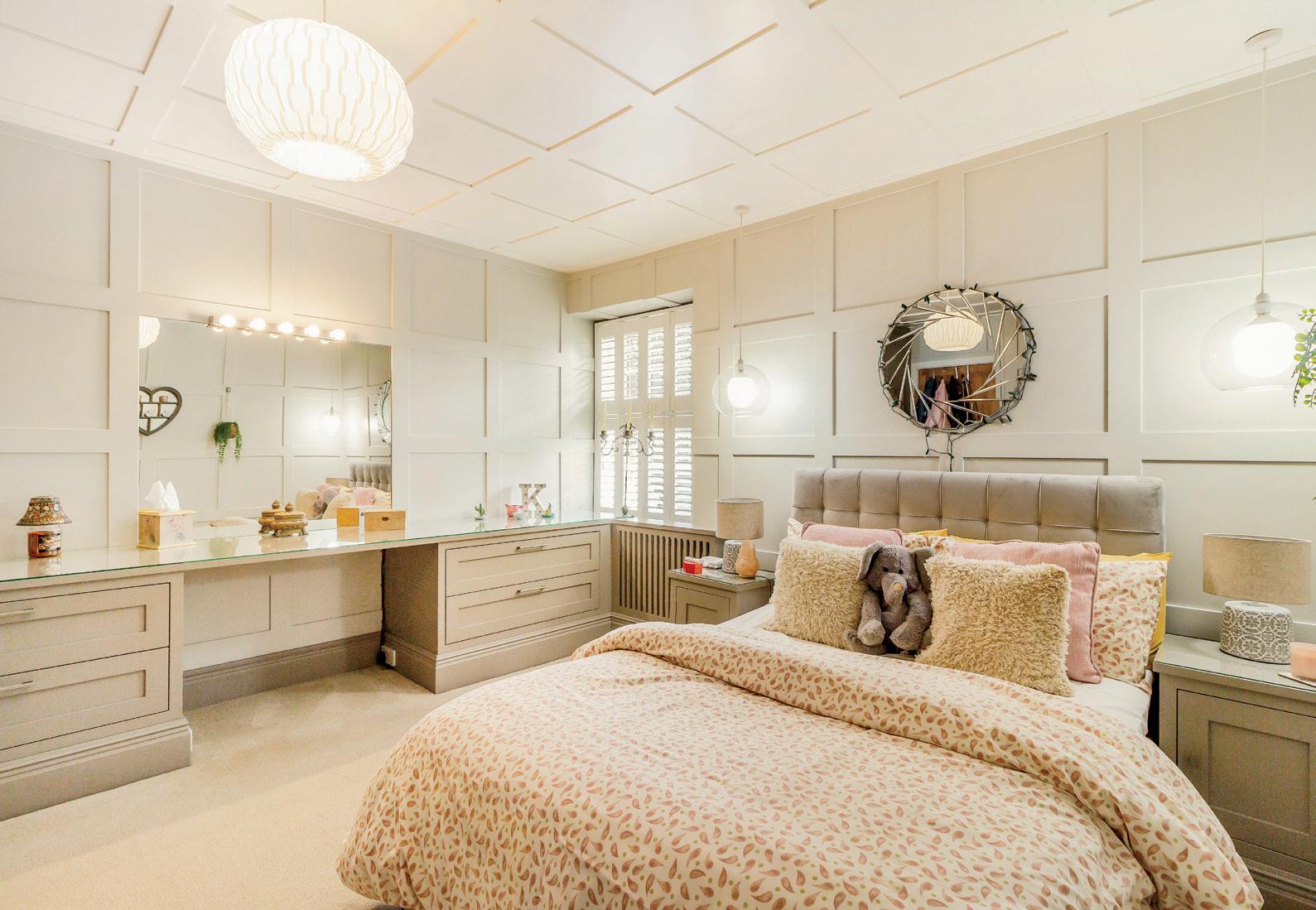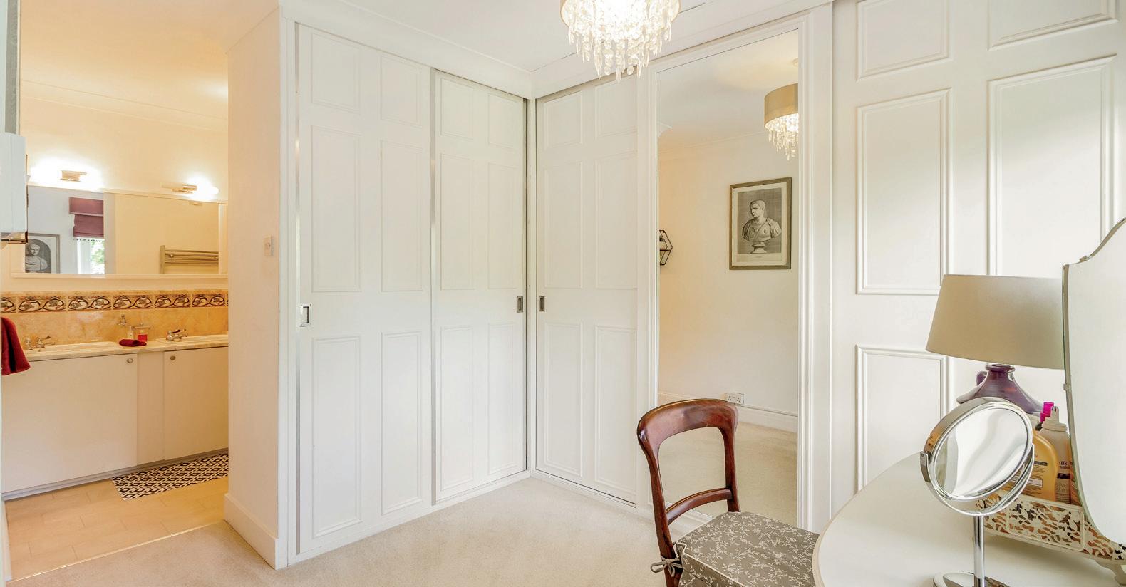 The principal bedroom suite is located above the formal morning room, meaning it can enjoy the benefit of an impressive bay window too, with a trio of large windows offering three absorbing views of the garden directly from the pillow.