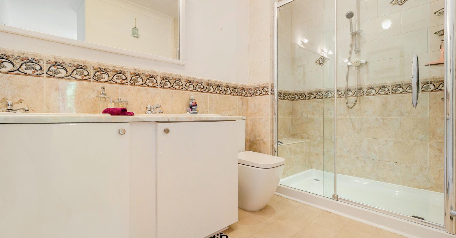 The elegant fireplace offers more character while the space flows through a charming arch into a magnificent dressing room with built-in wardrobes that leads into an ensuite with double walk-in shower and his and her sinks.