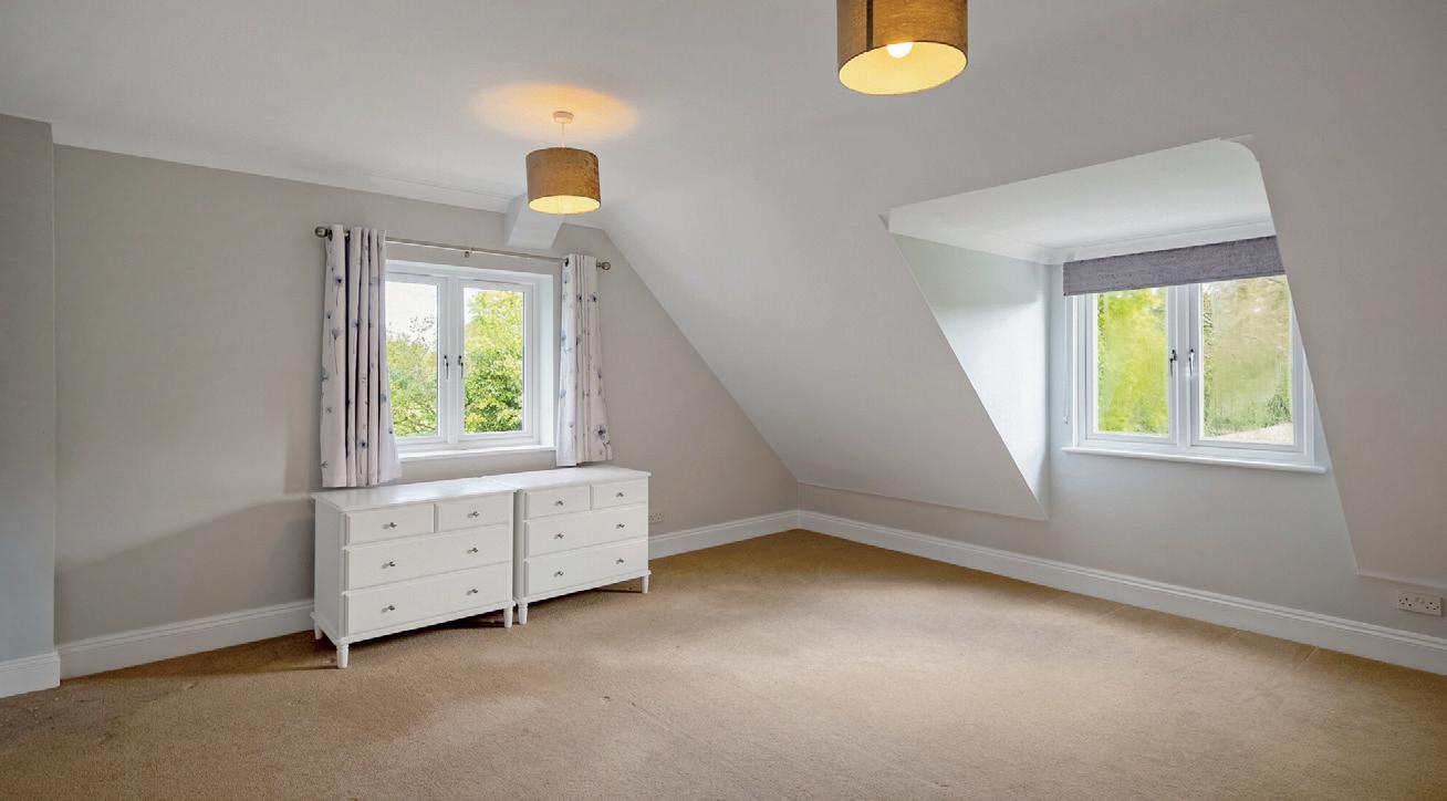 Ascending to the first floor of Bussells reveals an impressive principal bedroom suite, complete with a dressing room, separate shower room, and a balcony overlooking meticulously manicured lawns. Three additional bedrooms, one with a spacious dressing room and adjacent shower room, along with a family bathroom, complete the first floor accommodations. The second floor offers three versatile loft rooms.