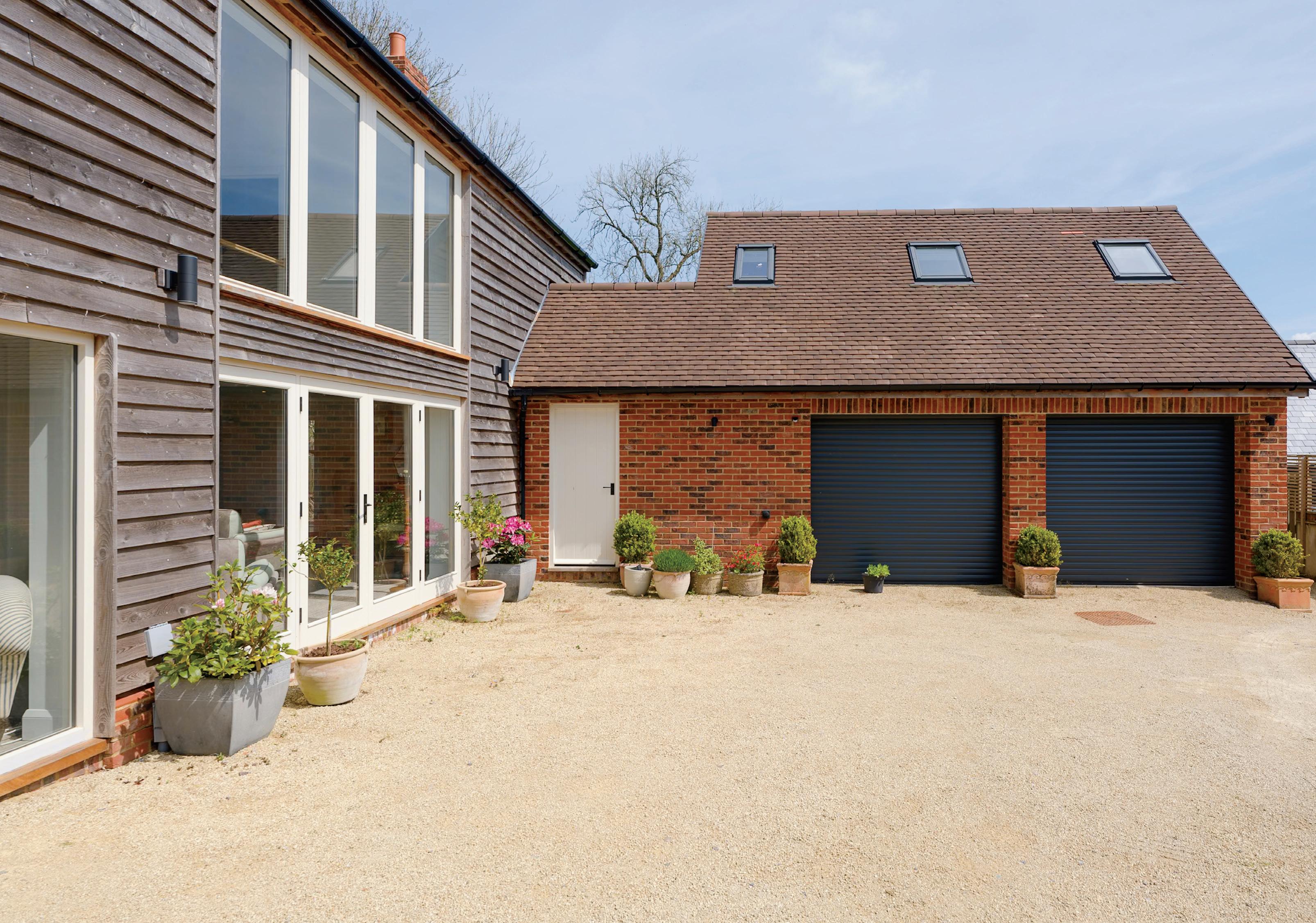 The self-contained annexe above the double garage is fitted with kitchenette and shower room and could be extended further by converting the space below.