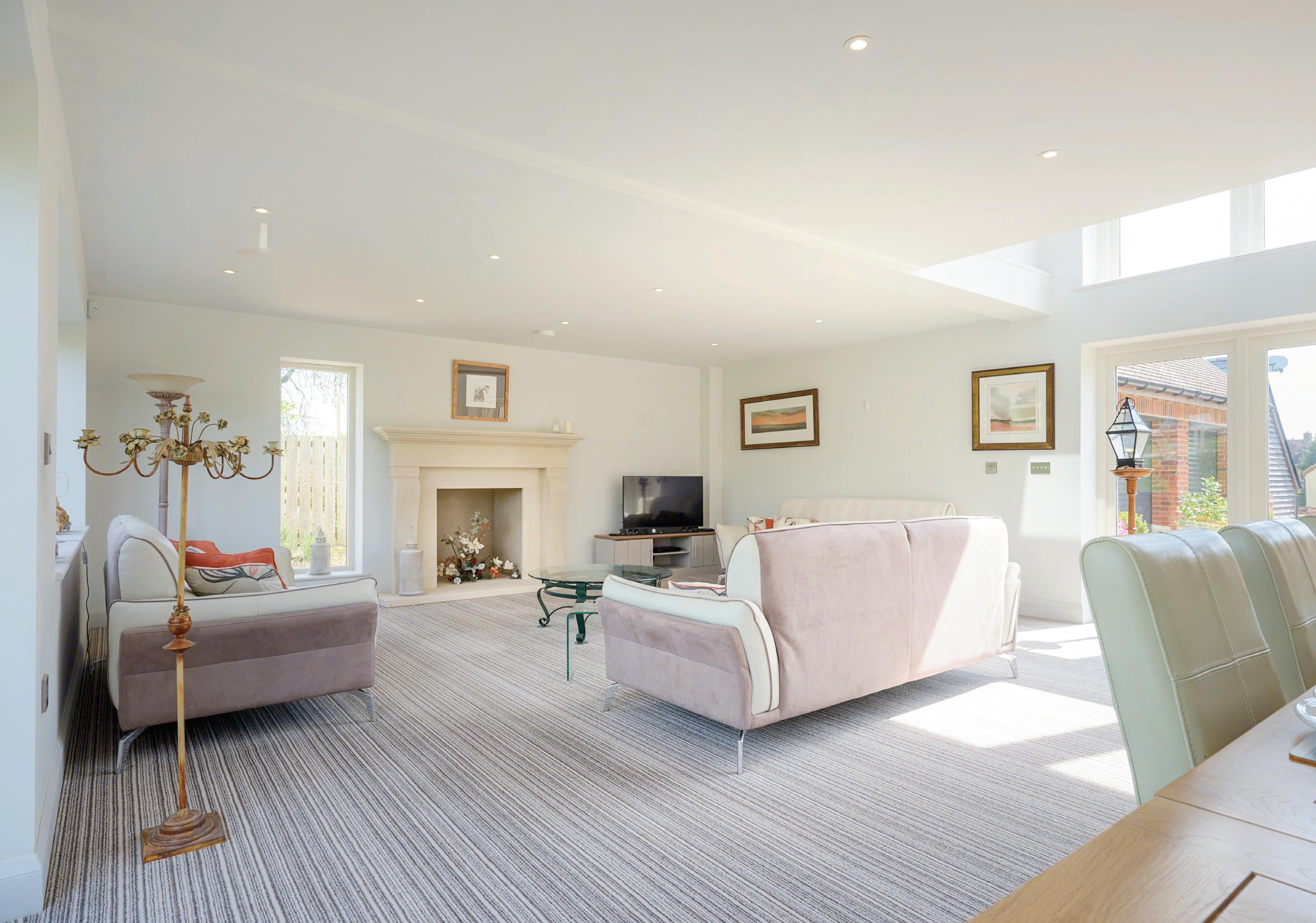 On entering Long Barrow View, one is immediately struck by the wealth of natural light that floods the entrance hall. Double doors open to the magnificent triple aspect living room which features dual double patio doors, a Bath stone fireplace and partially vaulted ceiling. The 24ft kitchen room is the perfect space to gather with family and guests, offering ample space to dine. The fitted kitchen is equipped with extensive two-tone painted units with white quartz worktops set around a central island unit finished with a stone worktop. There is a collection of integrated appliances including a Rangemaster with induction hob. Adjoining the kitchen is a utility room with rear access, perfect for bringing in muddy wellies and paws. The ground floor bedroom has an adjacent shower room, which could easily be made an ensuite if required. A further study with lift completes the ground floor accommodation. Long Barrow View is very energy efficient and features a Daikin air-source heat pump and has EPC rating of B.