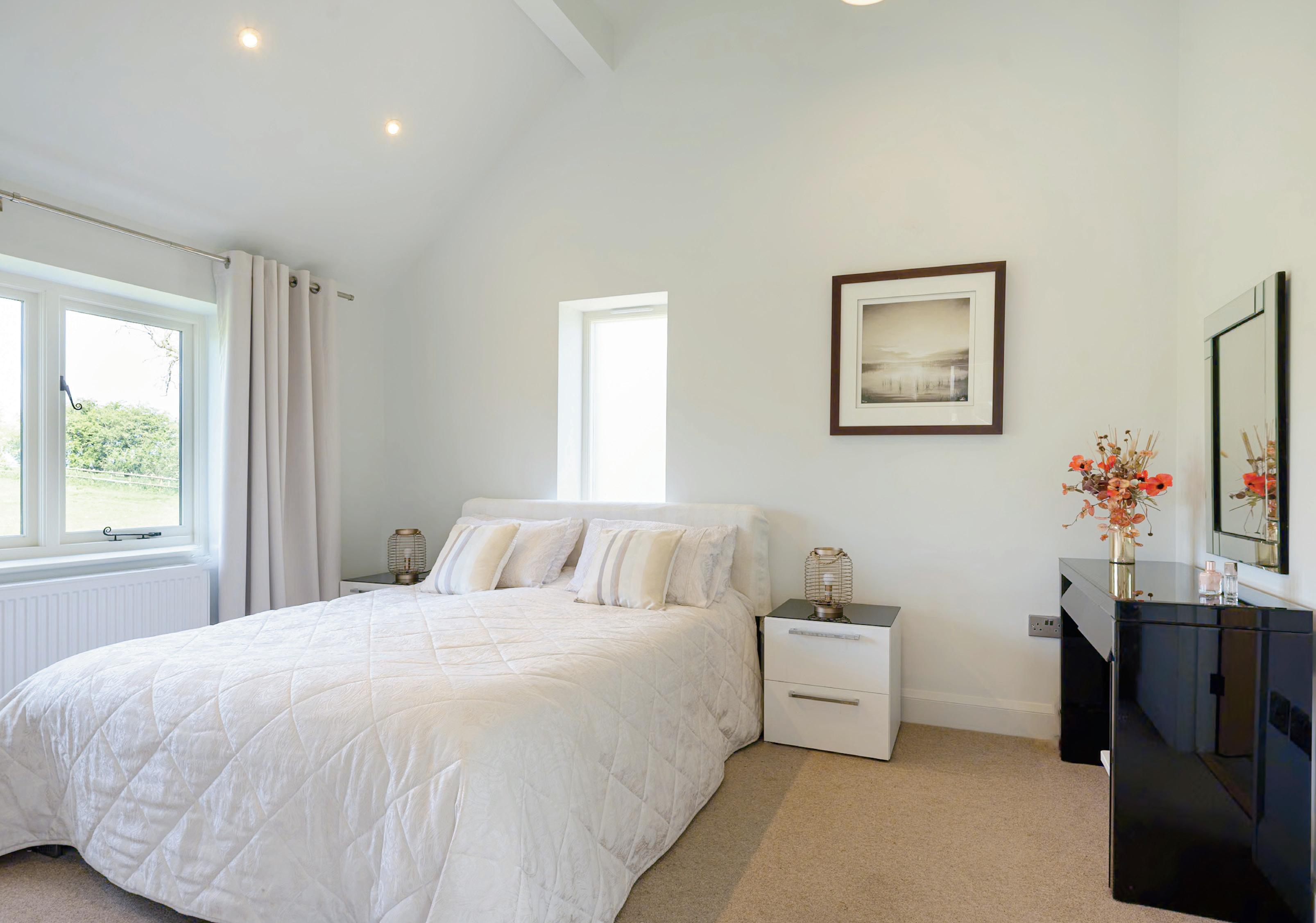 On the first floor, an impressive, vaulted landing leads to bedrooms, dressing room (with lift) family bathroom, and further shower room. Meanwhile, the principal bedroom benefits from a private en-suite bathroom fitted with a luxurious freestanding bath and rainfall shower. The first floor affords excellent vantage points from which to enjoy the surrounding views and in addition, the second bedroom benefits further with a Juliet balcony.