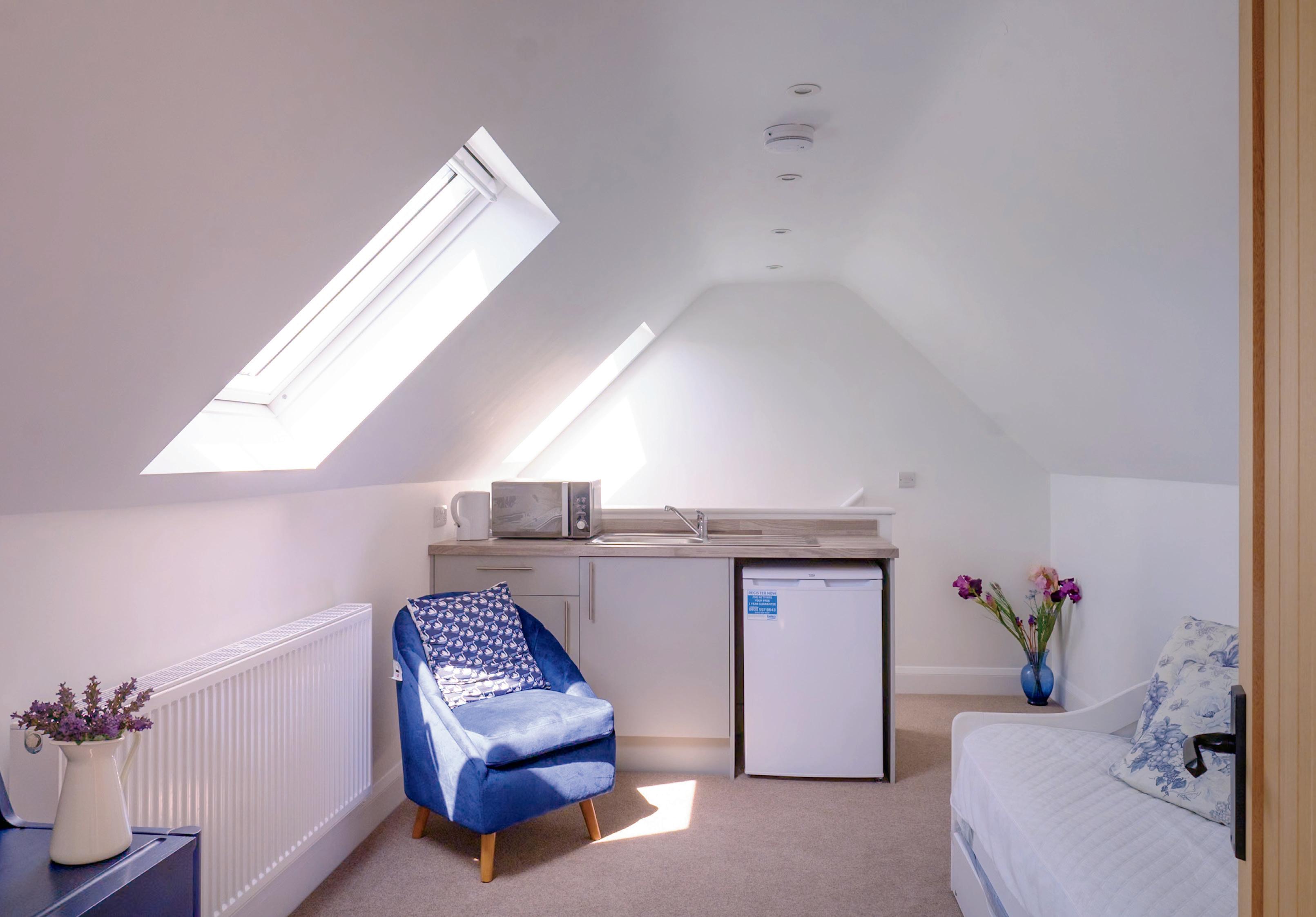 In these days of casual dining the kitchen becomes the hub of the home and is a wonderful place for sitting with friends. We also love our bedroom; it has a lofty ceiling but still feels snug and it offers total peace, and where else could you wake up to that wonderful view!
