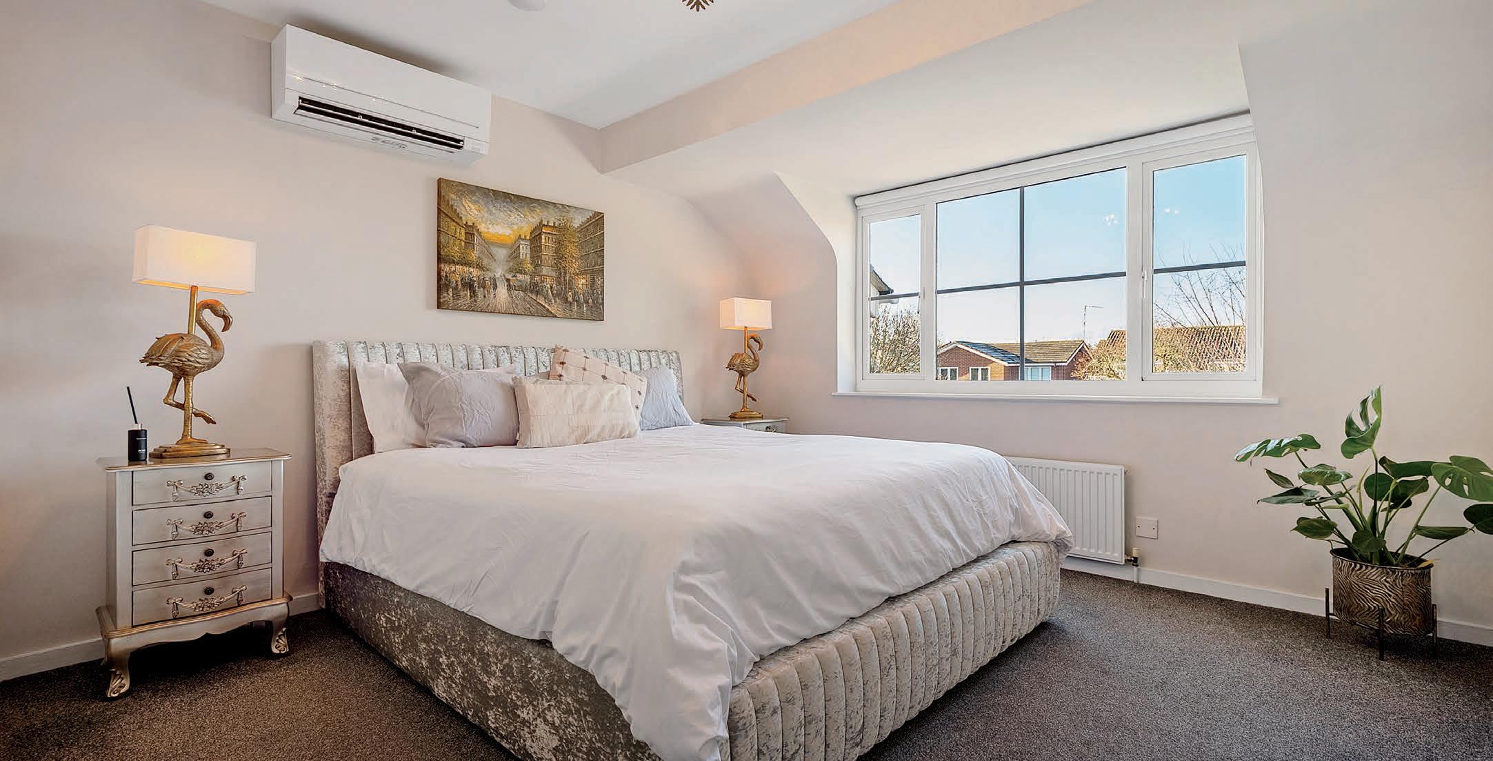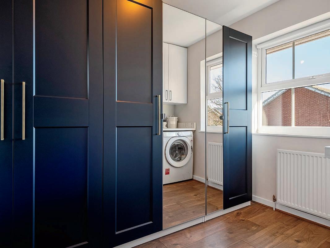 The first floor offers up to four bedrooms. Bedroom 4 has been converted into a useful laundry/dressing room with removable storage units meaning it can be converted easily back into a bedroom if needed. It also has a stunning shower room with beautiful herringbone marble tiles and a wet-room style rain-head shower. The landing features a bespoke Graham & Green mural. Bedroom 2 has a large walk-in closet with built-in shelving that extends over the stairs. There is a new Mitsubishi air conditioning unit in the master bedroom, with capacity to add another unit to the living or bedroom spaces in the future. The loft has been mostly lined and carpeted, with the addition of lighting and a new fire-rated loft hatch making a superb storage space.