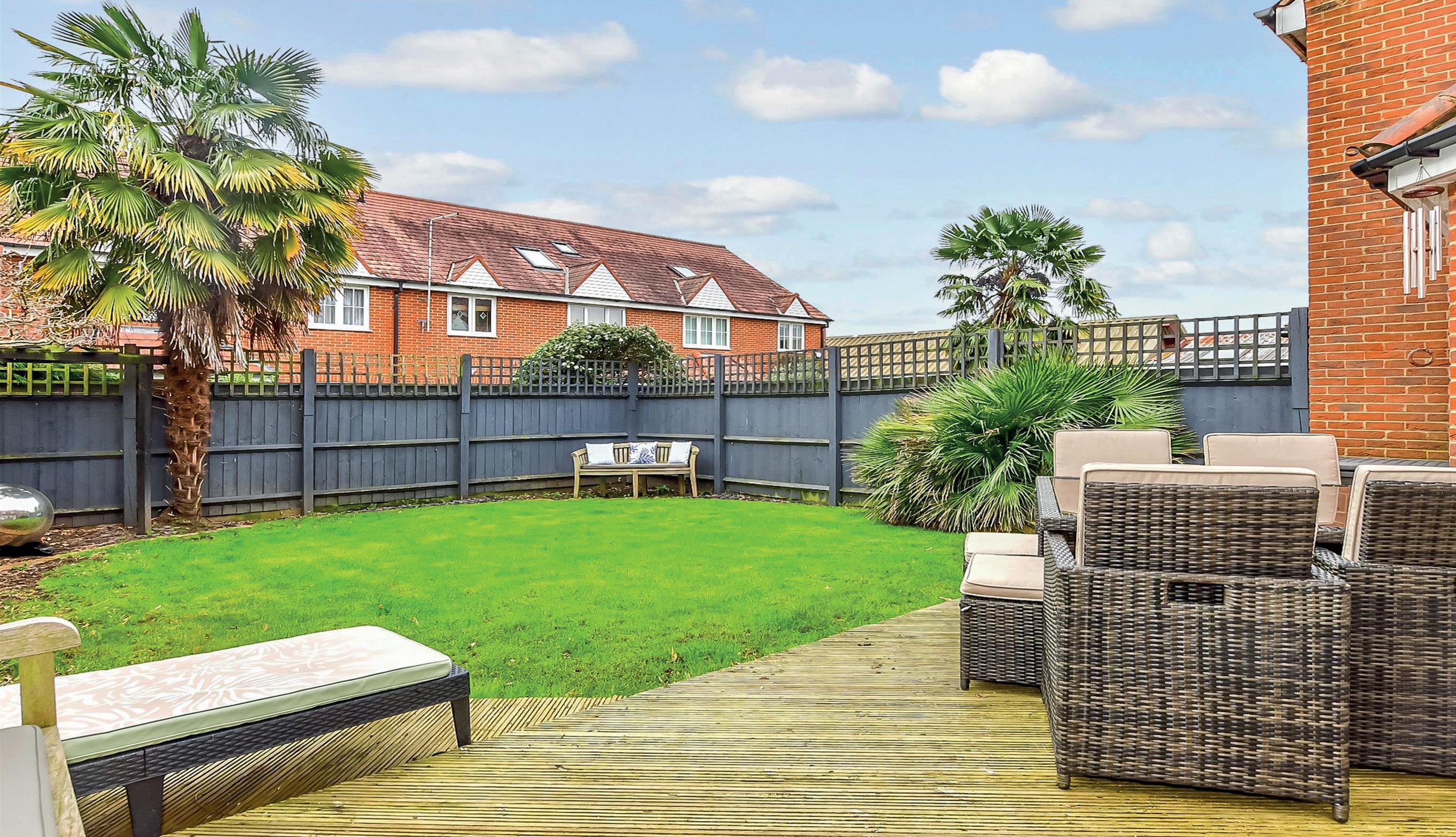 On the ground floor the house offers a lounge/diner and a study. The lounge/diner to the rear has two sets of patio doors leading out to the rear garden, with a lovely grassed area and a decked area. There is also a gated side entrance. Additionally there is a modern, fully fitted kitchen with a breakfast bar and a ground floor cloakroom.
