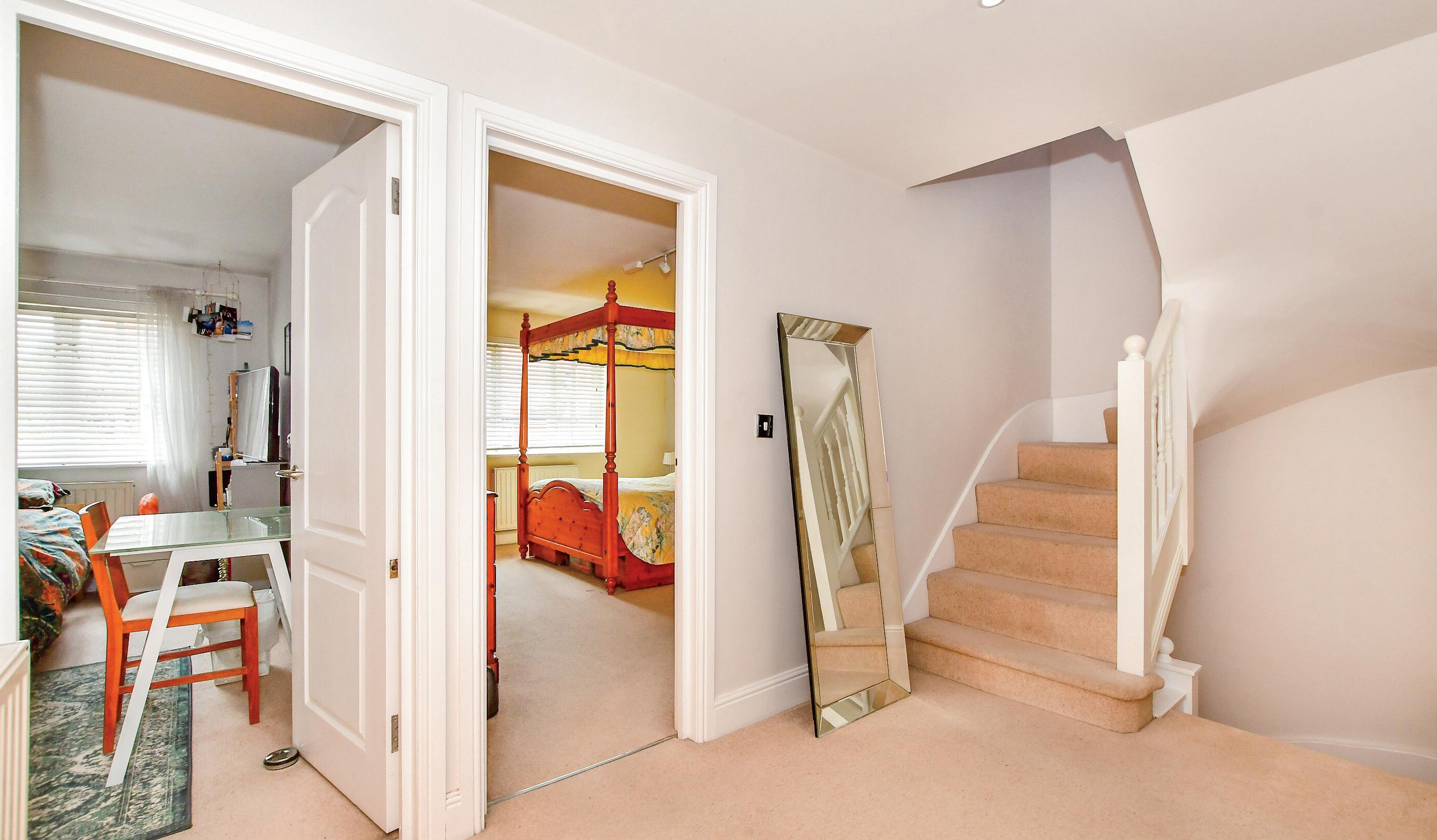 On the first floor there is a large landing area leading to four well-proportioned bedrooms and a bathroom. On the second-floor bedroom one has an en-suite shower room, a walk in wardrobe, eaves storage and four large windows with a Juliet balcony overlooking the forest canopy.