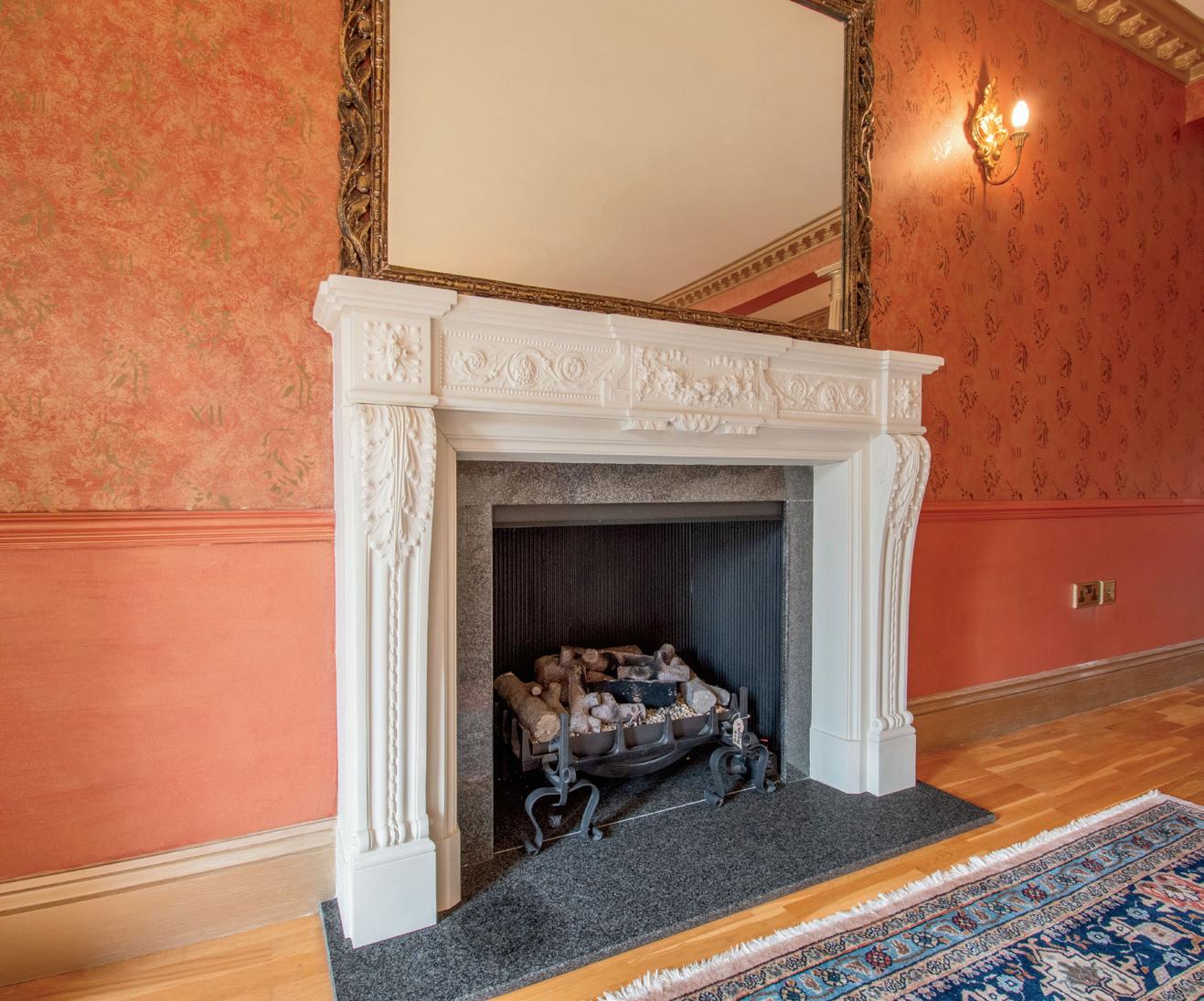 Double opening doors access the adjacent elegant sitting room, which has three arched windows looking over the formal garden the room is light and inviting set around a period styled fireplace with decorative grate.