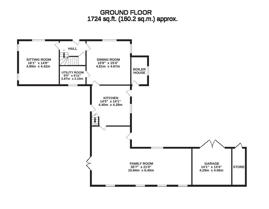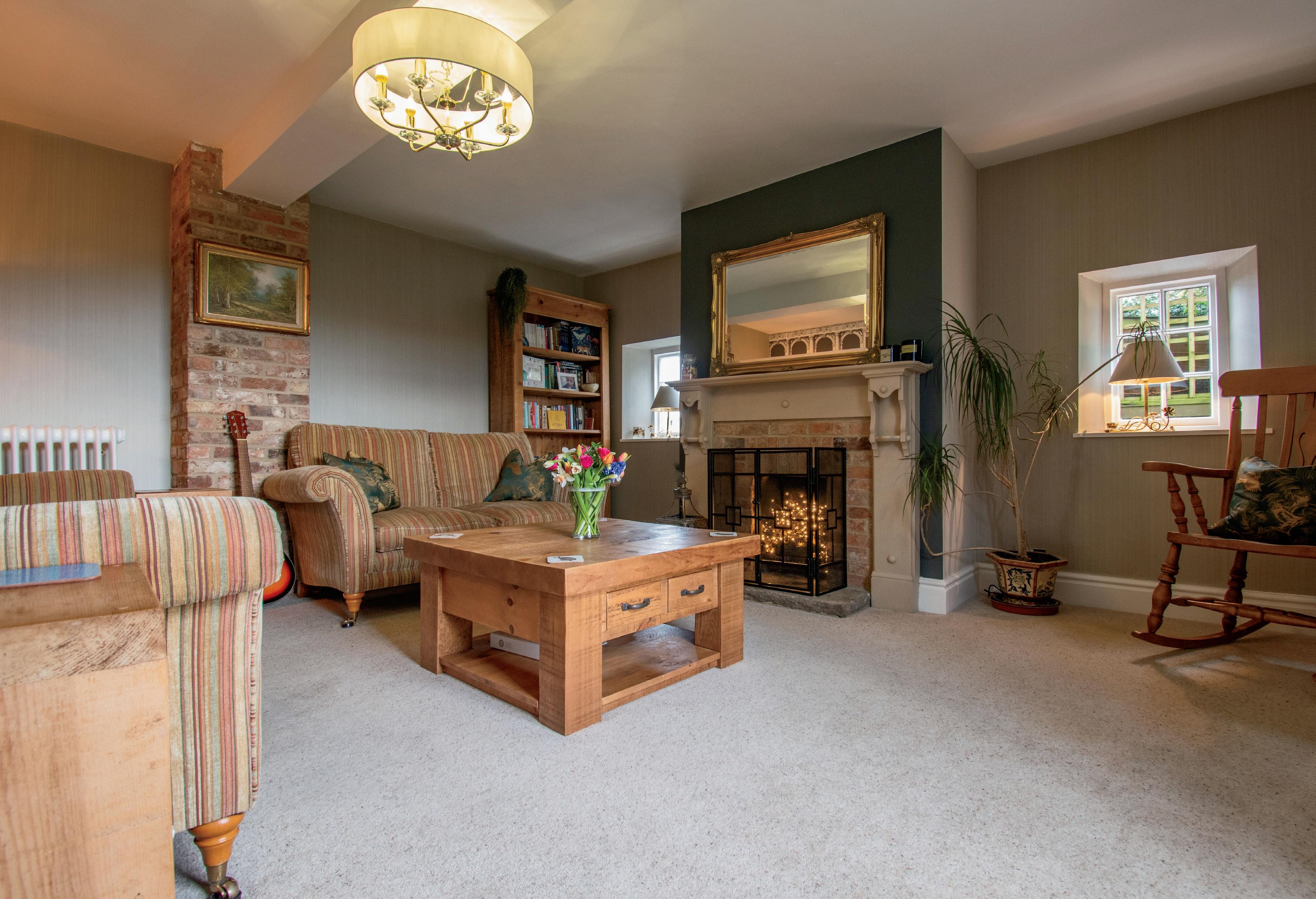 To the side aspect of the property, which historically will have been the front formal entrance, a canopied door opens into a hall with a spindled staircase to the first floor with an understairs storage cupboard. The hall is flanked by two formal reception rooms, a traditional layout for a property of the period. The first is a welcoming dual aspect sitting room with a period stone painted fire surround with exposed brick inset. The second is the spacious dining room which also has a dual aspect and is set around an exposed brick floor to ceiling fireplace with a multi fuel stove. A practical lower level utility, which could possibly have been the scullery, has space for appliances and includes a butler-style ceramic sink and a w.c. to provide cloakroom services to the ground floor.