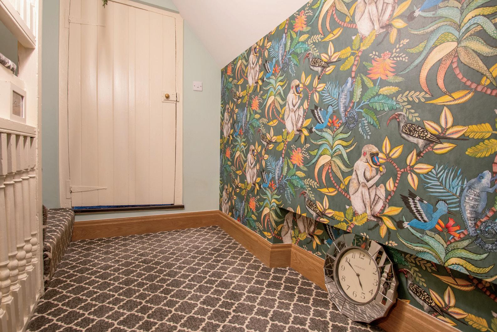 The landing leads to the third bedroom which has a feature quirky spindled staircase and has been left in situ as a nod to the past, where it is thought that seasonal farmworkers used to sleep in the loft. Bedroom three is a spacious double with a decorative wood painted fireplace and built-in wardrobes.
