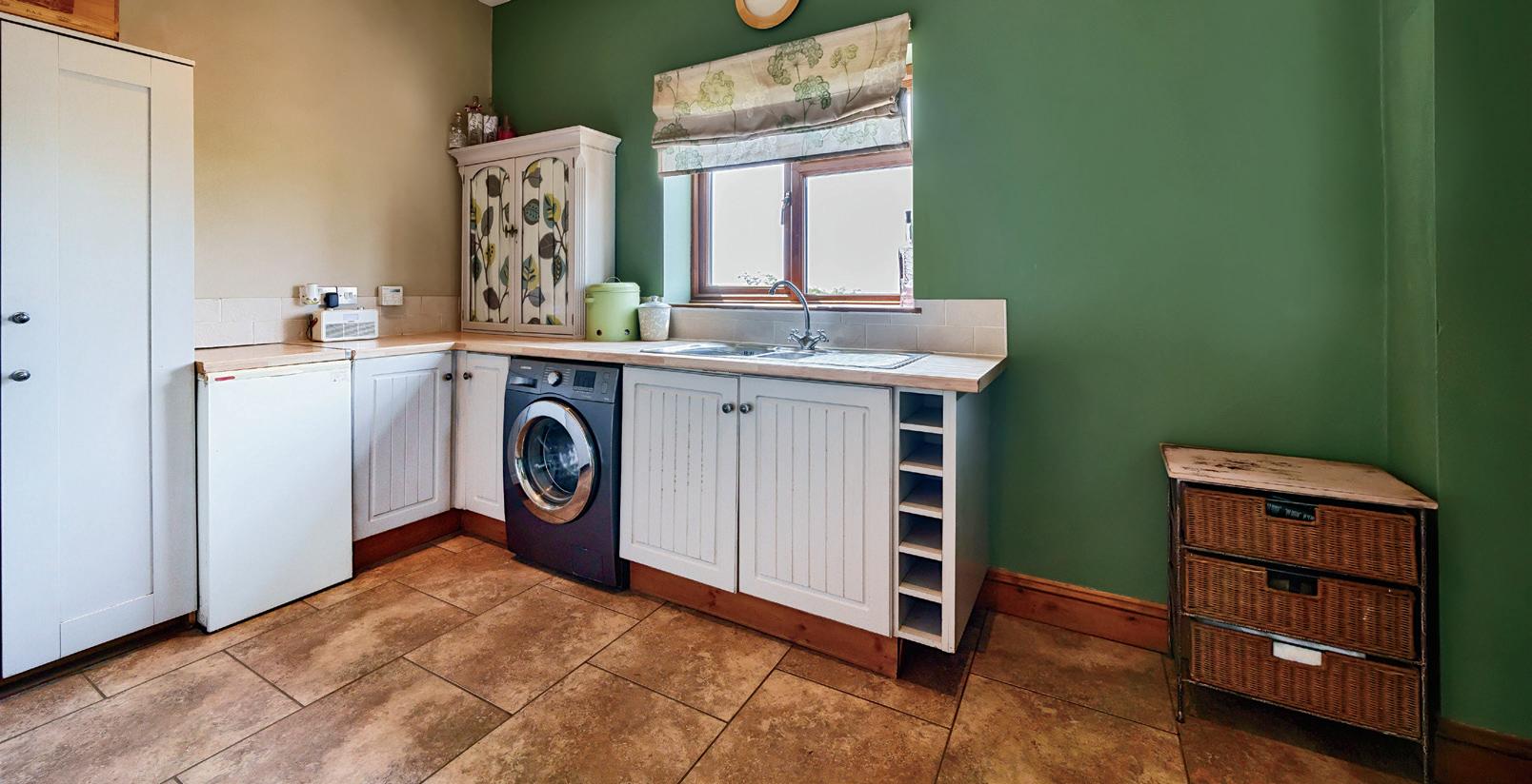 A half-glazed door opens to the Laundry Room which has a tiled floor, base units, inset sink unit, plumbing for washing machine and oil-fired central heating boiler. A stable door opens to the rear.