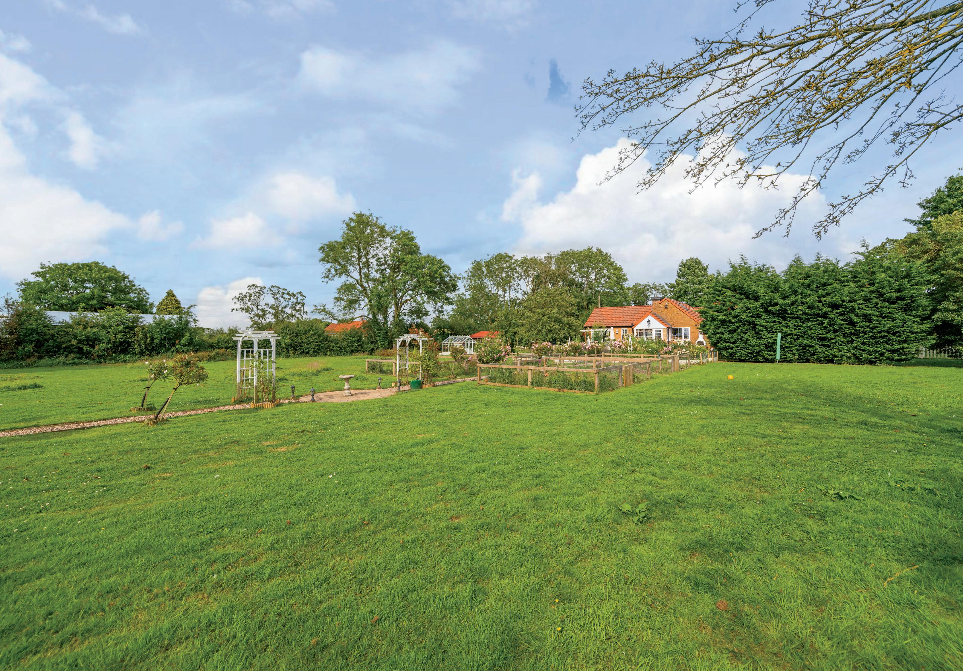 The rear of the property really comes to life with large area of lawn, a gated and fenced paddock on the southern boundary with two recently constructed stables, and a wildflower garden with ornamental pond and Japanese style bridge. There’s a long gravel pathway that leads back to the rear terrace with some delightful Rose covered pergolas and some fenced vegetable plots. The property has a raised terrace along the rear elevation, perfect for enjoying the sunsets and summer entertaining.