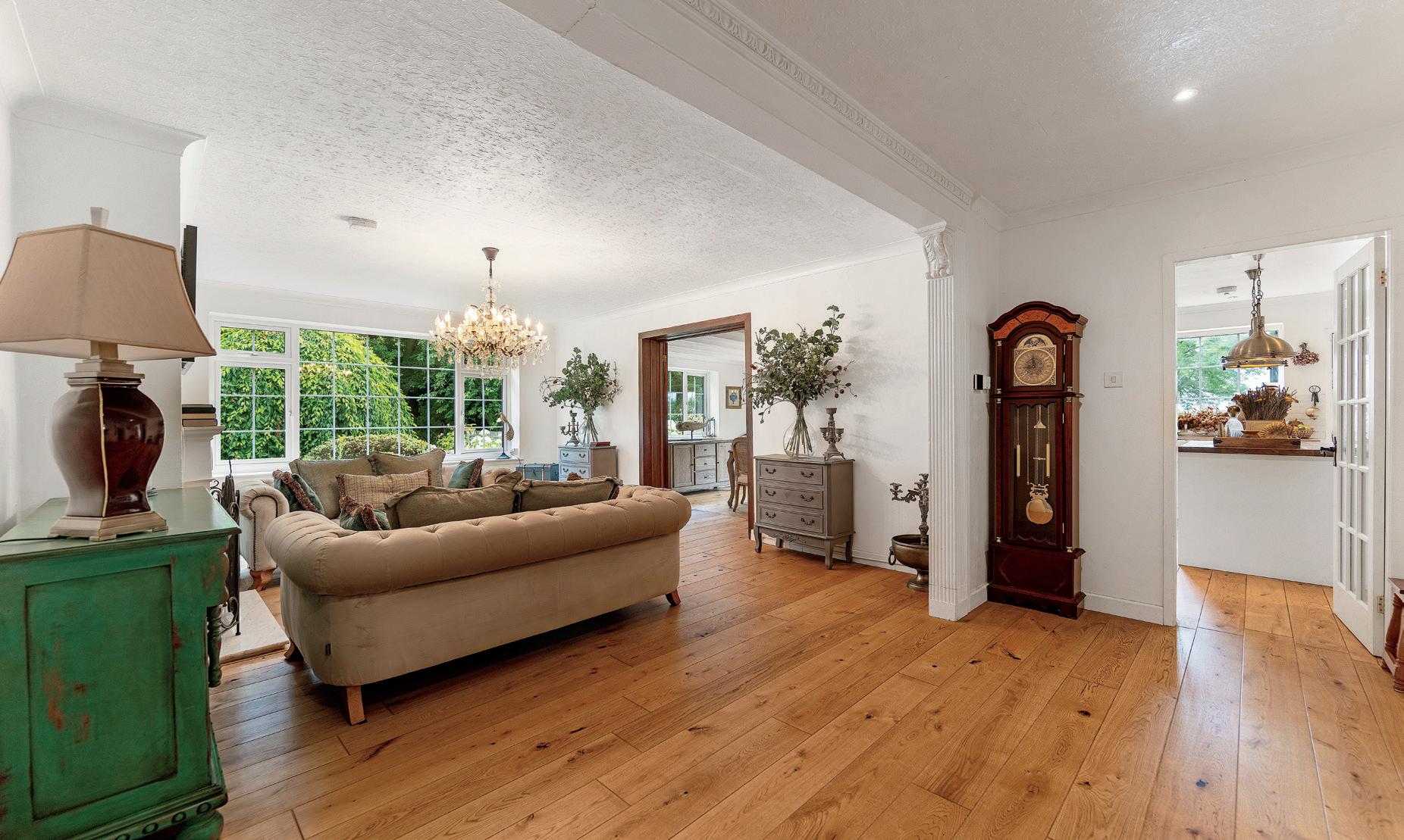 The inner lobby leads to the bedroom wing of The Spinney, providing access to a refitted family shower room, two further double bedrooms and a principal bedroom suite with a luxuriously appointed ensuite bathroom and double doors leading to the rear terrace. The house has recently been fitted with underfloor heating.