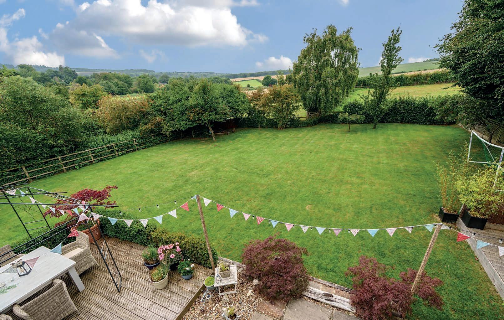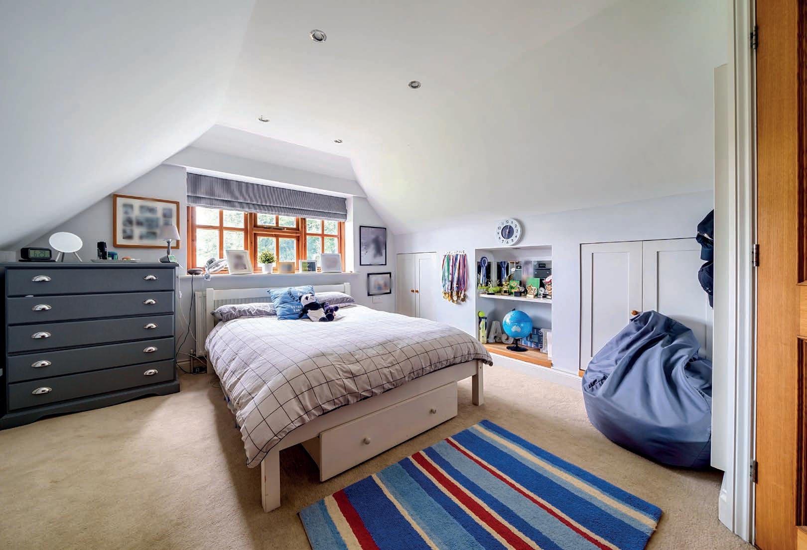The garden backs onto fields and gets the sun all day so you can enjoy the different terraced areas for al fresco dining or relaxing in the sunshine, admiring the views. There is a useful garden shed, a large lawn that is ideal for the kids to kick a football or run around with the dog as well as a designated children’s play area surrounded by trees and shrubs. There is a charger for electric cars attached to the main house. The large detached pitched roof garage is carpeted on the ground floor and has been used as a games room in the past. There are stairs up to the first floor where you will find a vaulted office/hobby room that has been insulated and includes heating, electrics and lighting and is ideal if you want to work uninterrupted by activities in the house. This whole building could be converted into a separate dwelling if required, subject to the necessary permissions, so could be extremely useful for multi-generational families or someone wanting to run a business from home or perhaps holiday lets.