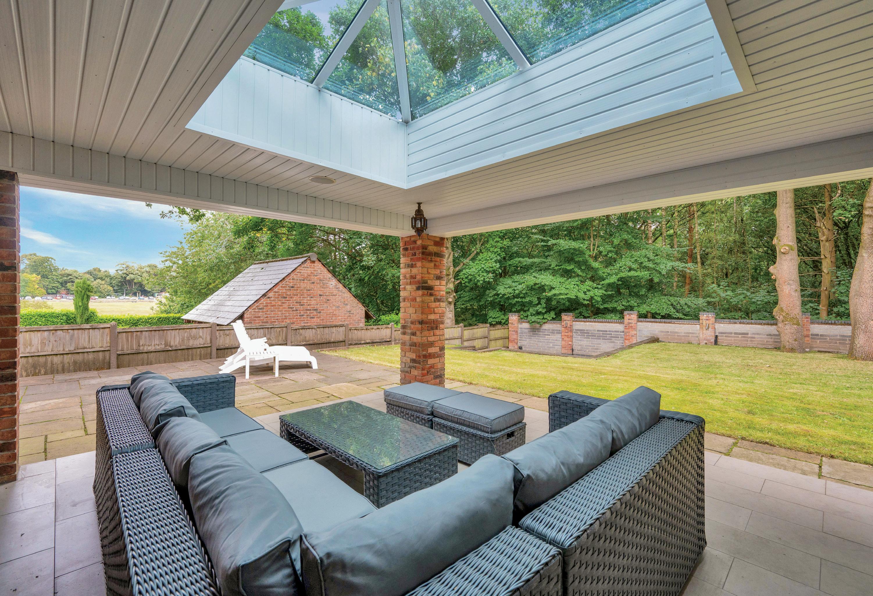 Externally, the property is tucked away in the corner of this exclusive luxury development. Accessed via a private drive, upon entering the grounds via the gated entrance you are greeted by a substantial tarmac laid driveway which is capable of accommodating a number of vehicles comfortably. The double garage provides covered parking for two vehicles or further useful storage space, with a fantastic room above currently configured as a home gym but could easily lend itself for a variety of uses. The rear and side gardens offer a very generous space for families to enjoy with enclosed borders, established trees/ shrubbery surrounding the plot, a vast lawned area, sunken seating/ firepit, a substantial side patio and a covered veranda for all seasons use.