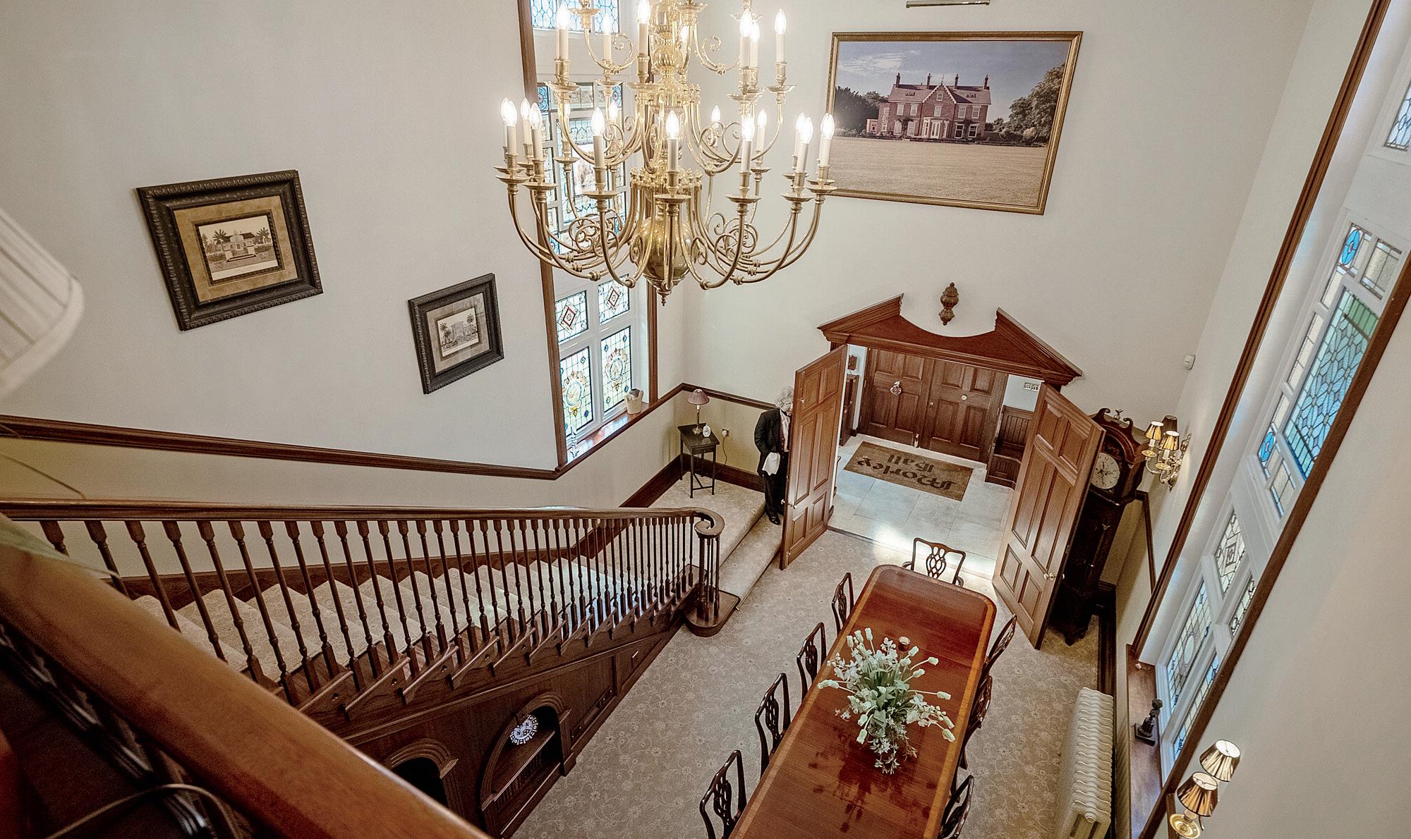 “When we bought the Hall, it was very run down and required a lot of work,” the owners continue. “However, the prospect of working on a major historic renovation project to bring the building up to modern day standards whilst retaining the original features was an attractive proposition. So, we set about doing just that. The main outside walls were retained but extensions built to maximise the layout to create rooms of a much bigger size with more flexibility of use. Renovations included all new large sash double glazed windows (43 in total); a rebuilt roof and chimneys using the original materials; new internal walls, floors and ceilings with modern insulation; upgraded electrics, heating and service cabling; new cornices to the rooms which were a copy of the originals that had deteriorated; and refurbished doors and woodwork. The original stained glass windows were re-positioned and set in new double glazed units. Further, old derelict buildings were demolished to make way for the new extensions.”