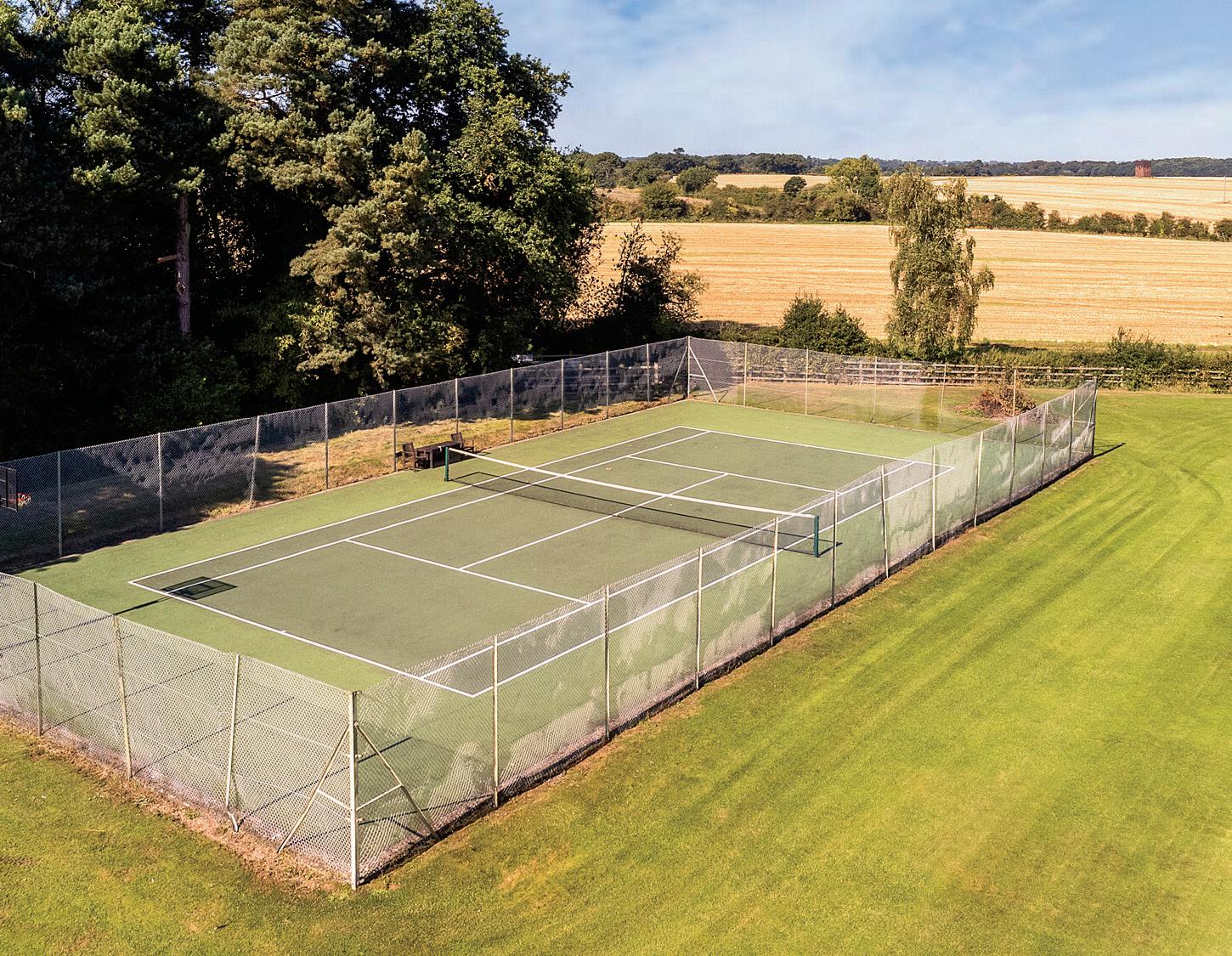 The main field area has a professionally laid cricket wicket and has annually held cricket matches for the local community and sports clubs. The hard surfaced tennis court has also been used for professional Basketball training matches. The field has also been used as a par 3 golf course with six greens, and has held school sports days, village events and football matches. All this is connected to the house itself with a modern glass extension incorporating an outdoor kitchen, spa facilities and sports that brings the outside gardens into the home for entertaining family and friends.”