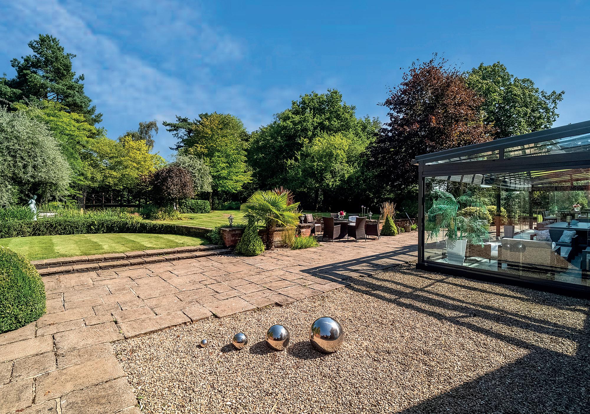 This beautiful property boasts large reception rooms, a stunning open plan kitchen and entertaining space overlooking both the courtyard and the formal landscaped gardens to the rear. The high standard of finishings is evident in the beautiful bedrooms and high-quality bathrooms and the property is ideal for entertaining with it’s fabulous dining hall, cinema room, and glass garden room. Bringing the outside in, the garden room incorporates an outdoor kitchen, and spa and sports facilities perfect for entertaining family and friends.
