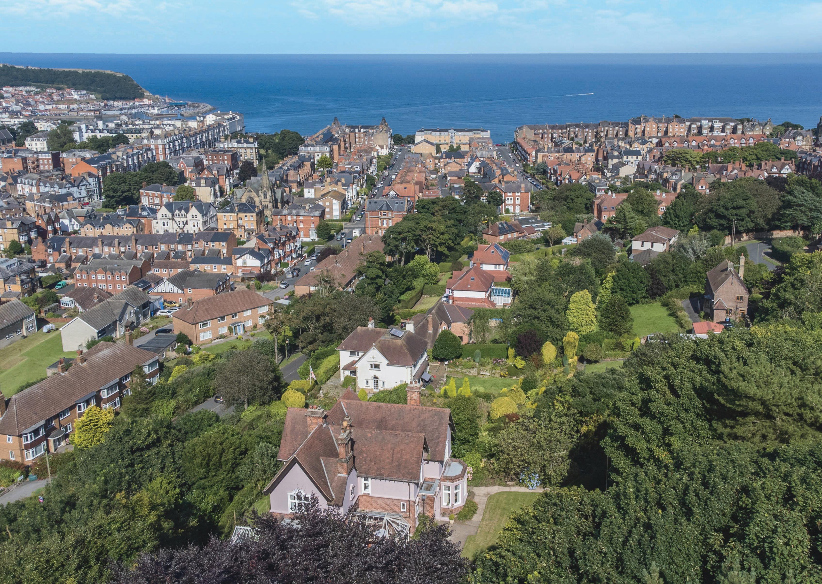 Experience the timeless charm of this exceptional Edwardian detached residence designed by Charles Edeson in 1902, renowned for its distinctive character and set on a generous plot that includes its own enchanting woodland area. Perched on an elevated site, the property offers breathtaking panoramic views over Scarborough, capturing the majestic castle and the serene sea in the distance. This unique home retains most of its’ original architectural features and combines seclusion with convenience, providing a tranquil retreat while remaining close to key local amenities.