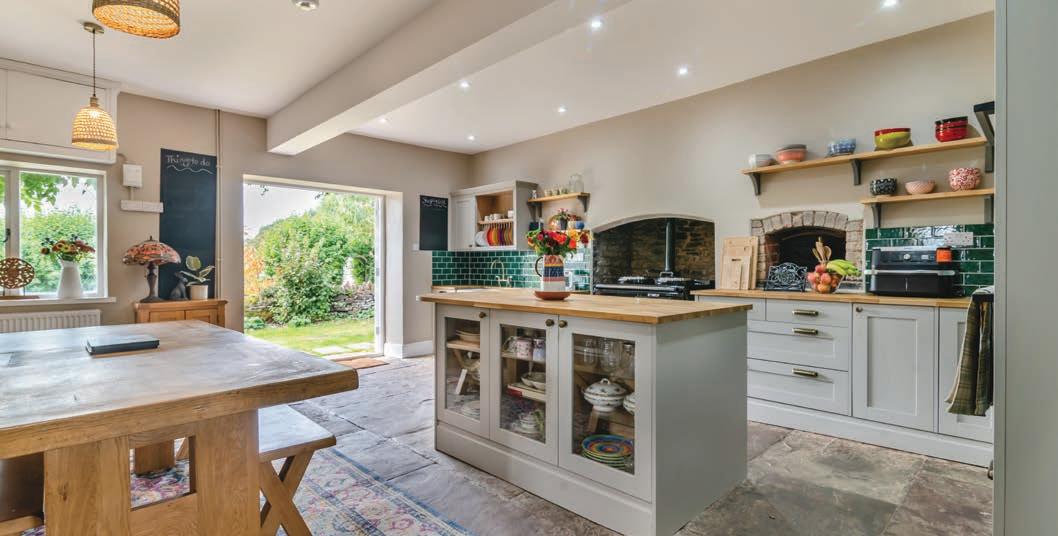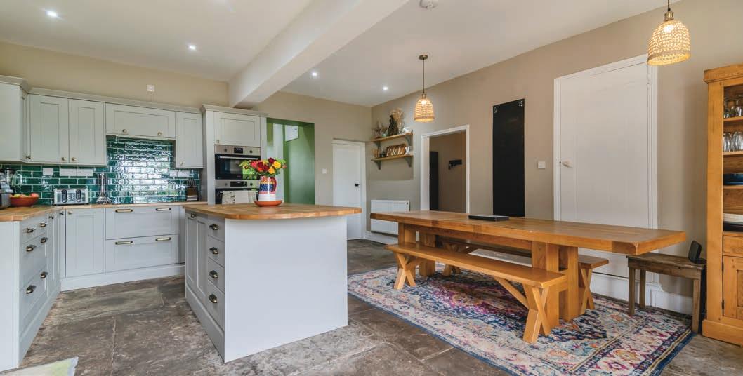 Step inside. Due to the parking arrangements, the current owners typically enter through the boot room/utility at the rear. This spacious, practical room is ideal for dogs, coats, shoes, and wellington boots, with a laundry area and access to a ground floor shower room. It leads directly to the heart of the home, a stunning kitchen, installed in 2023, featuring a grey shaker-style design with solid oak worktops and a central island, all set on a flagstone floor. A black oil-fired Aga takes pride of place, complemented by integrated appliances, including an electric hob, two ovens, and a dishwasher. There is ample space for a family-sized table and chairs, with glazed French doors offering views of the garden. A door from the kitchen leads to a cellar, which is also accessible from outside.