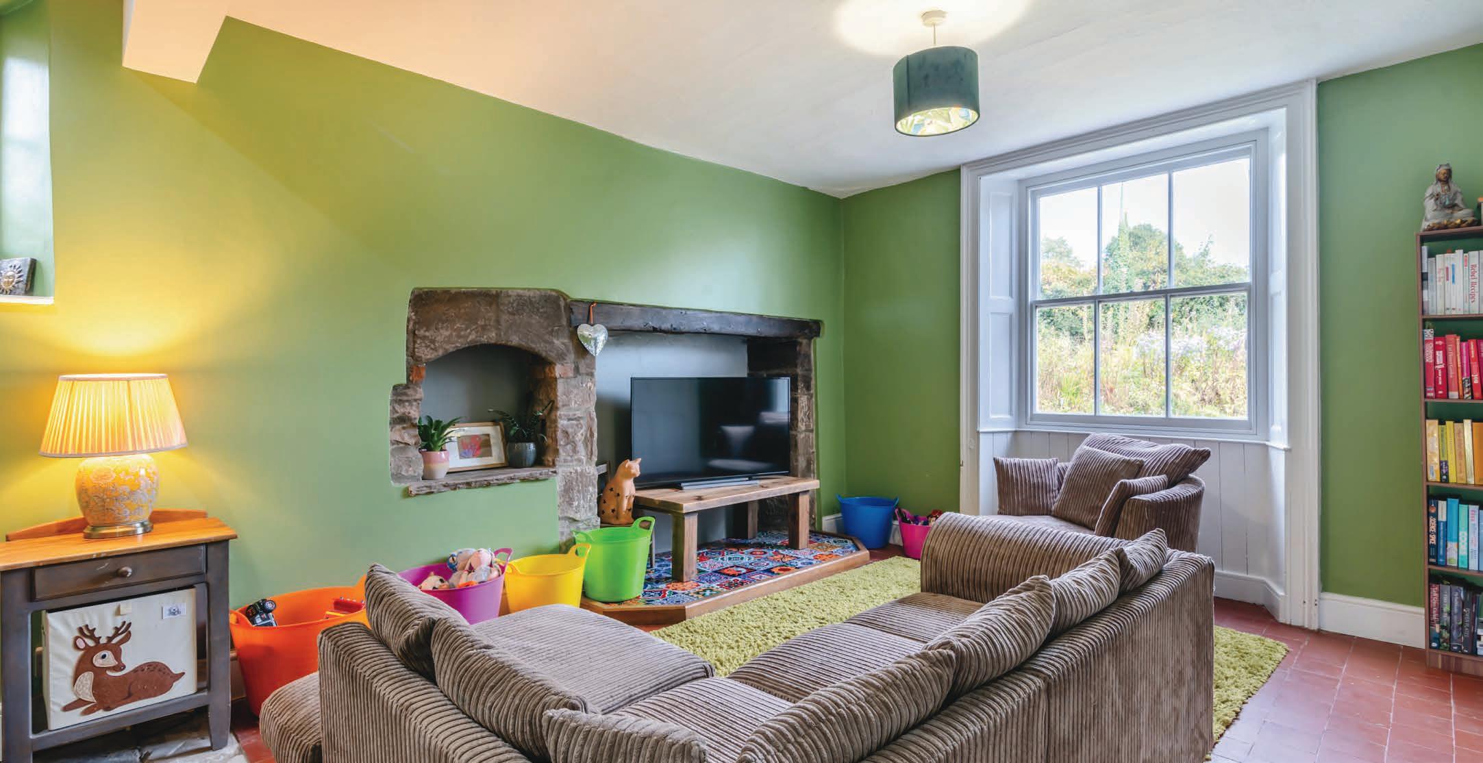 In addition to the family room is a generous sitting room, which also boasts a feature fireplace and a sash window to the front.