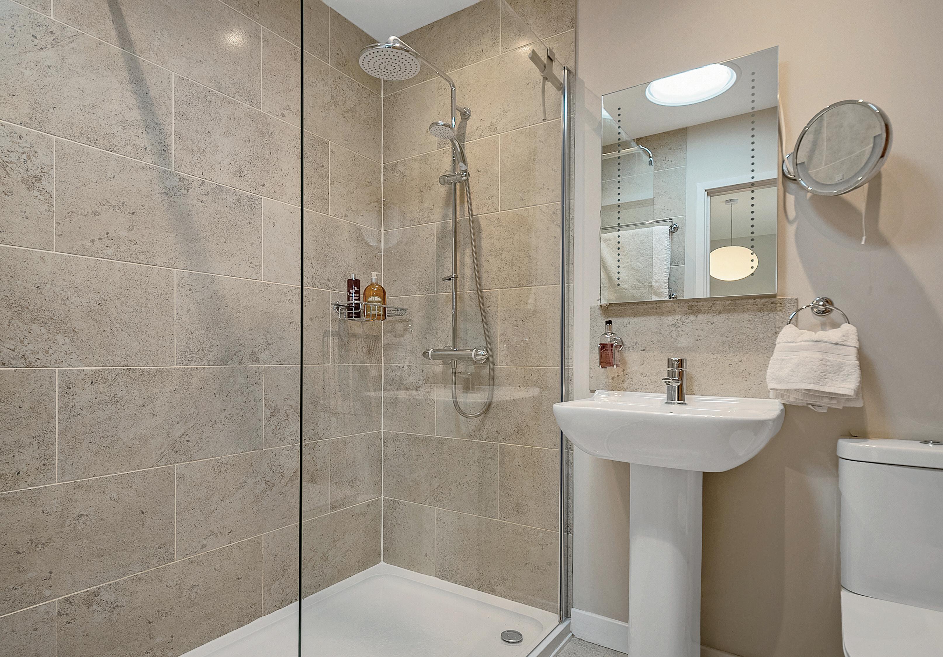 The hallway leads off to the bedroom wing of Steeles Hollow, which also has a convenient family room taking full advantage of the gardens and woodland at the rear of the property. The principal bedroom is an expansive dual-aspect room with ample storage, leading to a stylish ensuite with a double shower cubicle, modern WC, wash hand basin, and a tall, heated towel rail. Bedroom two is a spacious double bedroom with views across fields and gardens, whilst bedroom three overlooks the rear gardens and the fields beyond. The fourth bedroom is currently used as an internal office and houses the airing cupboard and Megaflow system for hot water. The luxuriously appointed family bathroom is fitted with a white suite and stylish tiles, with panelled bath, shower with screen, wash hand basin with vanity unit and low-level WC.