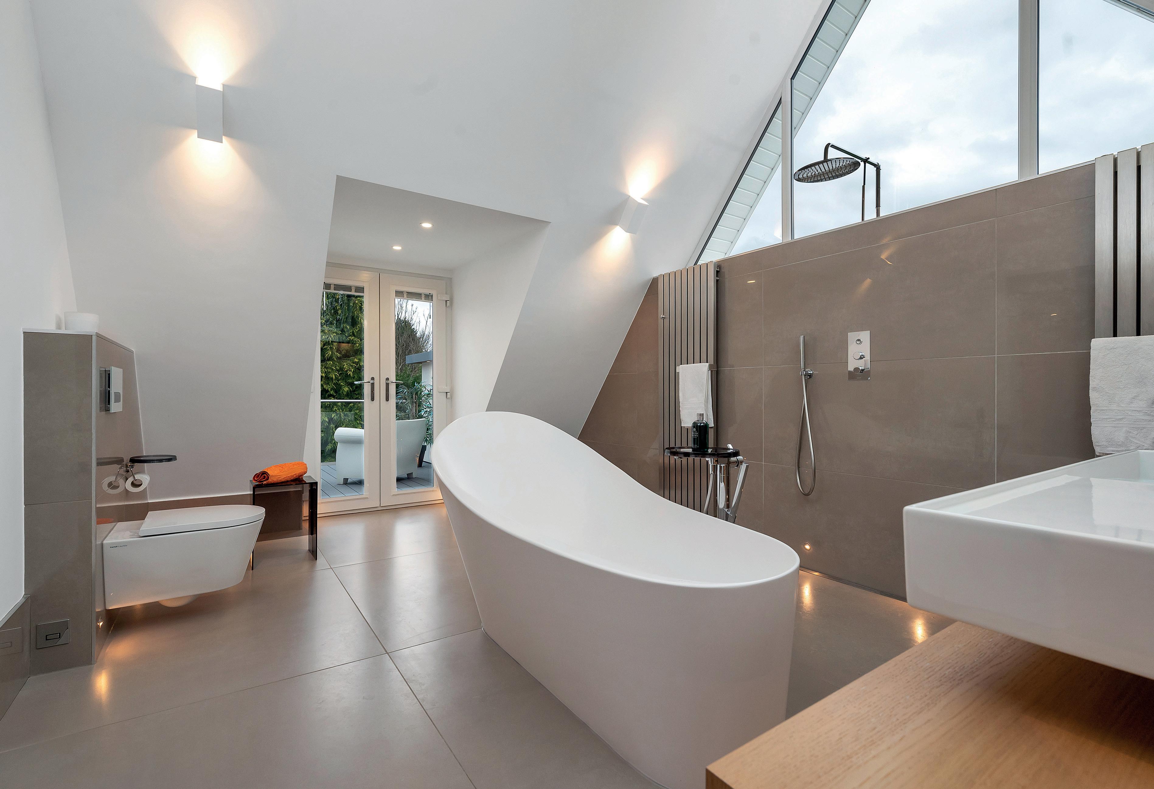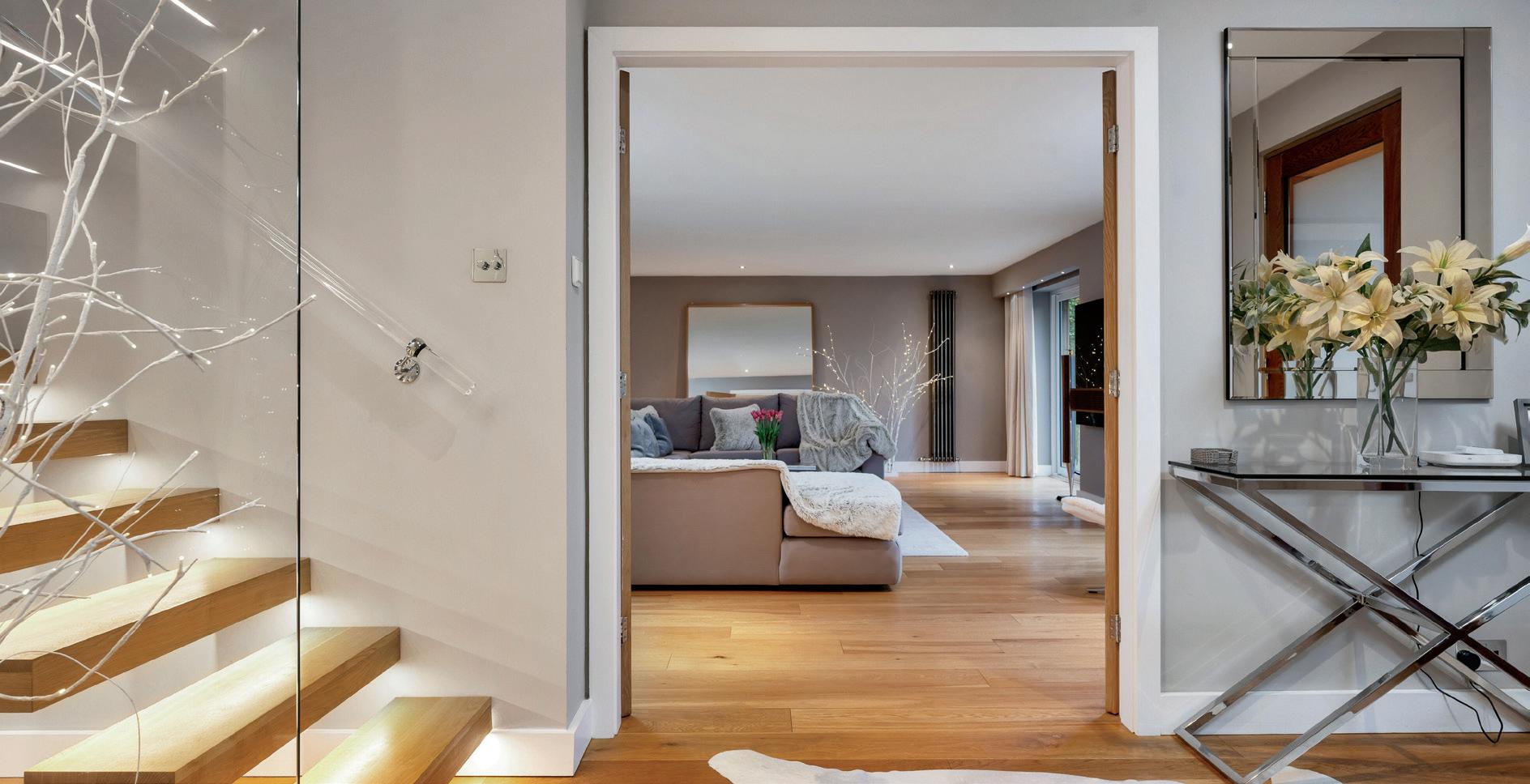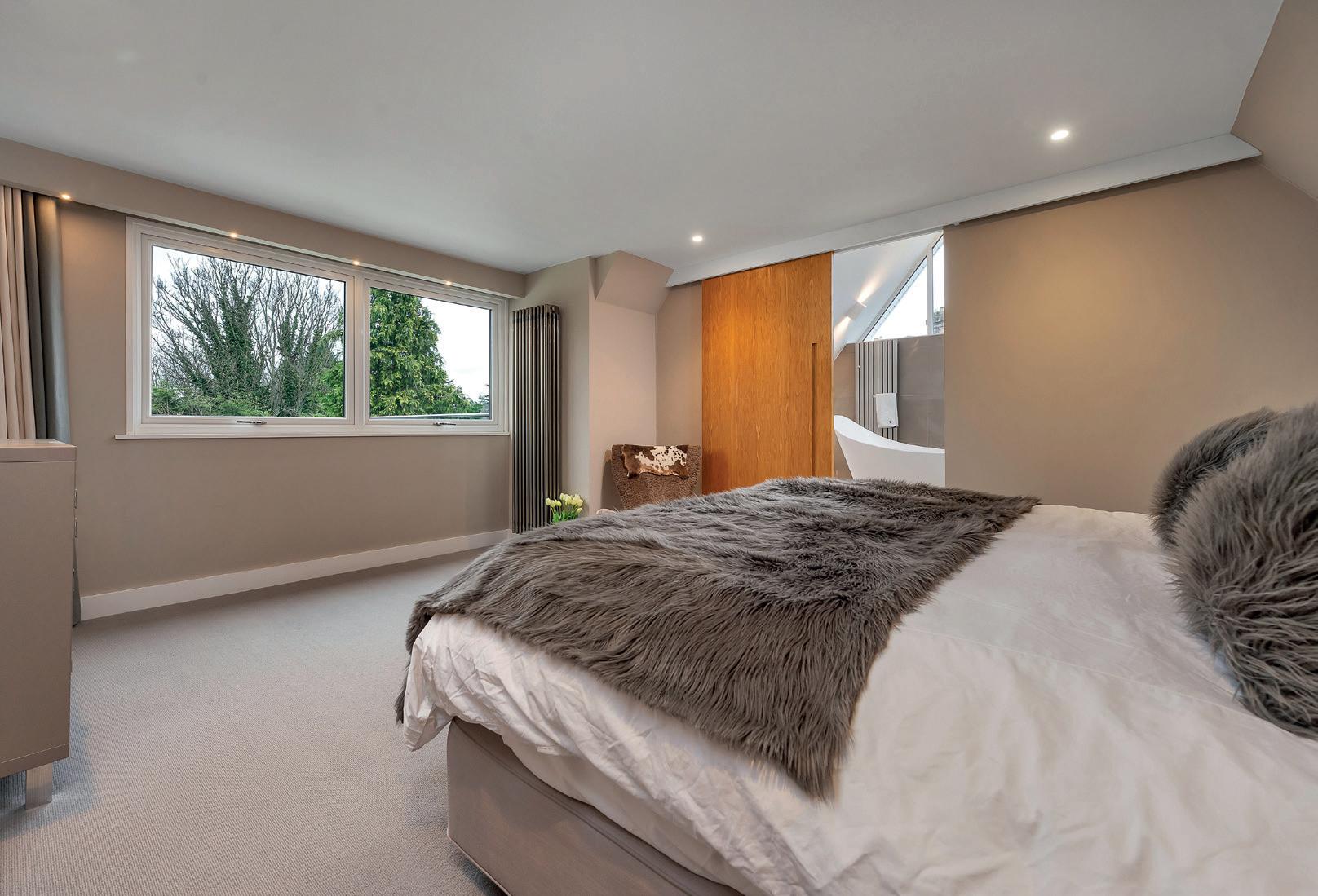 The stunning contemporary staircase rises to the first floor where a spacious landing provides access to an impressive principal bedroom suite with a luxurious bedroom area which incorporates a sliding door leading to a stunning en suite bathroom which is beautifully finished and benefits from double doors leading to a decked balcony with glazed balustrade providing views of the garden. The first floor also provides two further double bedrooms, both of which benefit from built-in storage and share the use of a high quality family bathroom.