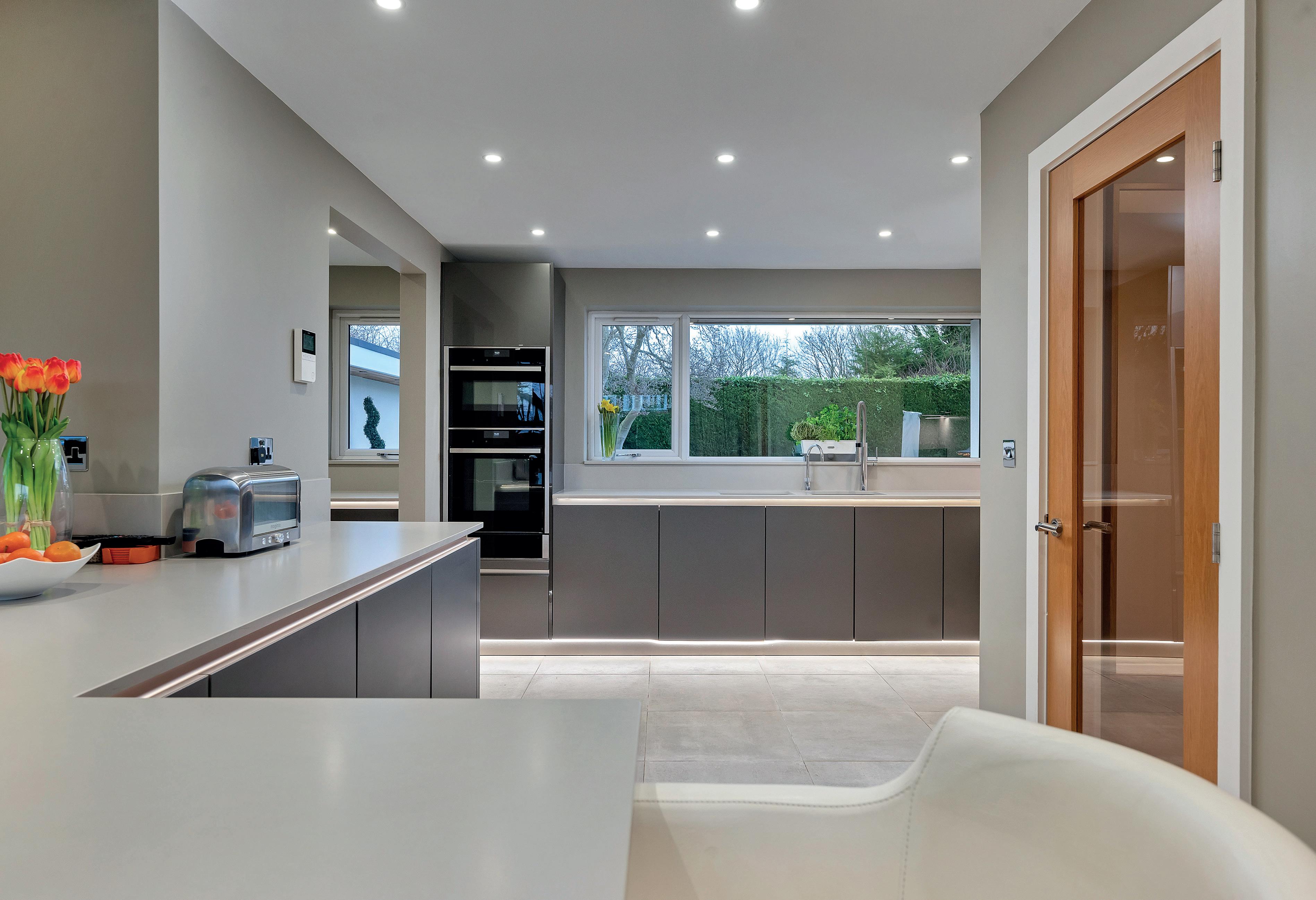 To the ground floor a contemporary entrance door leads into an impressive entrance hallway which is home to a striking bespoke timber and glass staircase allowing this space to be flooded with light. From here double doors lead into a generous sitting room with sliding doors to the front and rear which in turn provides access to a secondary reception room which is currently utilised as a snug / home office. Without doubt the heart to the home is the generous breakfast kitchen with high quality bespoke kitchen units beneath silestone worktops with a range of high end integrated appliances. The kitchen incorporates a utility area as well as feature lighting providing luxurious yet practical living environment ideal for modern day living. The ground floor accommodation is completed with a guest cloakroom.