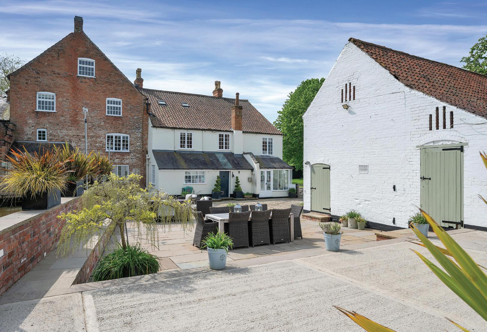 Lowdham Mill is approached via a private sweeping driveway accessed from Epperstone Road, culminating in a gravelled turning circle in front of the house. The gardens are landscaped and beautifully maintained, wrapping round the mill pond with feature foot bridge. They offer large level lawns, mature trees and an interesting variety of flowering shrubs with, pleasant walkways and seating areas which benefit from its sunny position. A particular feature of the property is the Dover Beck which it straddles, forming part of the boundary and feeding the mill pond. The gardens continue through an arched gate into the orchard and all weather tennis court. There are two fenced paddocks and in total the acreage extends to approximately 11.17 acres. Immediately to the rear of the property is an impressive paved courtyard offering the perfect place for outdoor entertaining and dining.