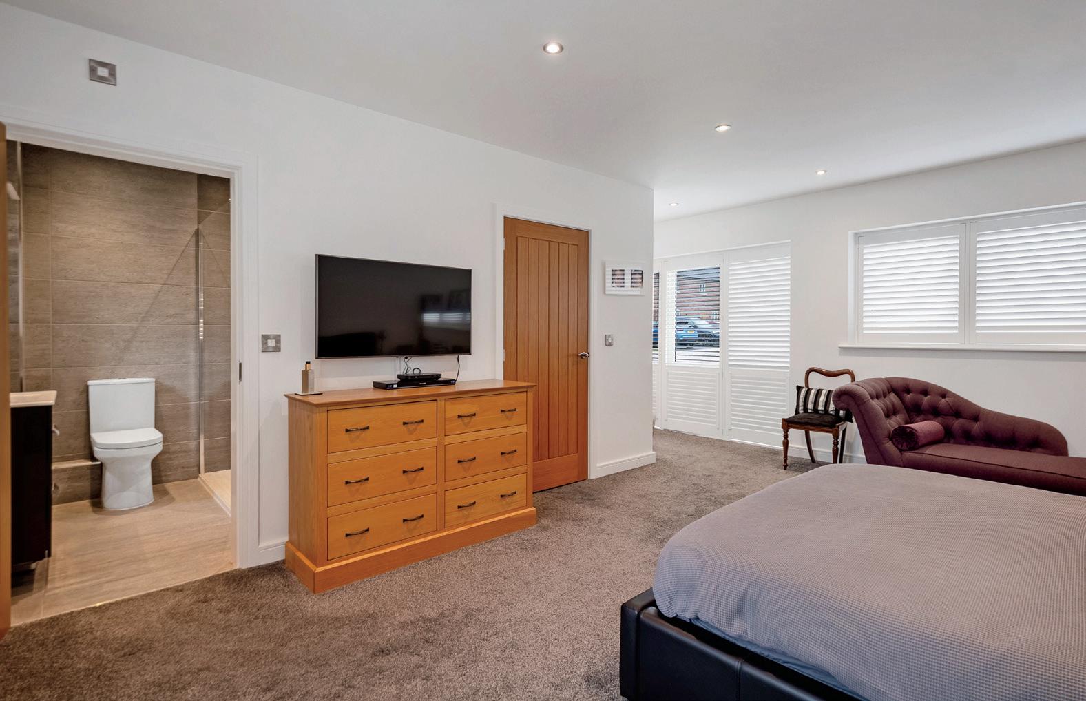 The owners have put their own stamp on the property during their time there. “Since moving in, we have increased the number of bedrooms with a large renovation of the upstairs roof space to incorporate new ensuite bedrooms,” they say. “Further to this we have extensively landscaped the gardens, creating a space which can be used all year round and truly fits in with the aesthetic of the surrounding countryside, with a modern twist. We love to entertain, and the garden has become a focal point for family gatherings and so much more.”