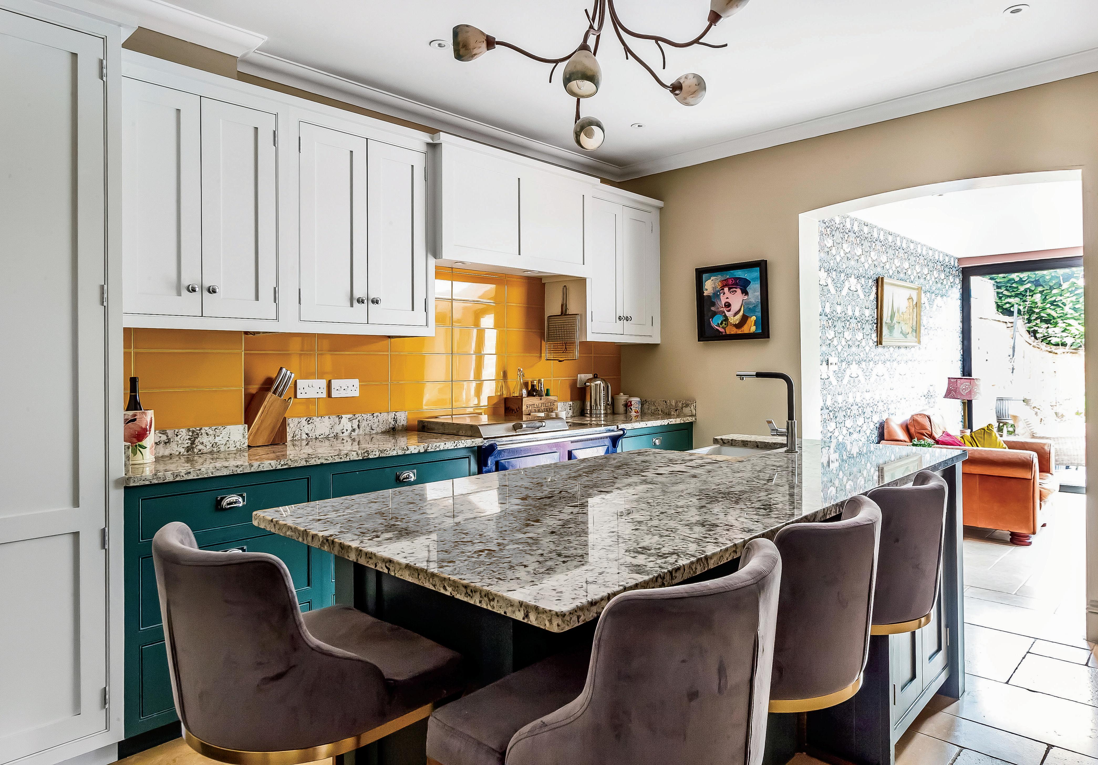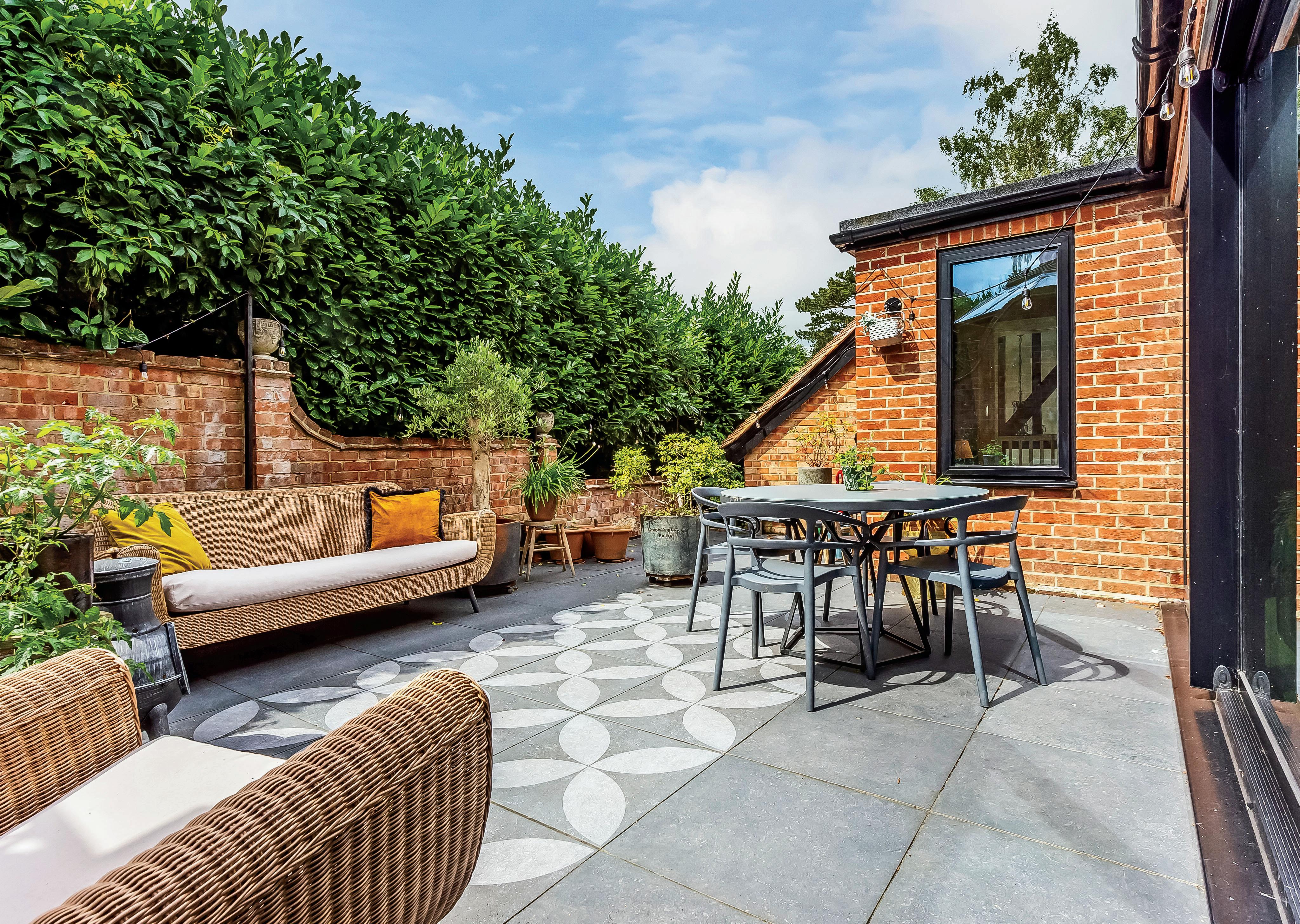 “When I bought it almost six years ago, structurally it was in great shape, but the interior was very dated and in desperate need of some TLC, so I’ve spent the past five years renovating and remodelling it. I wanted to make it more conducive to modern living, but I was also very keen to maintain its original character and charm, and I’d say I’ve struck a really nice balance between the old and the new. I added a side extension, which has created a lovely big living room with a wall of sliding doors that lead out into the courtyard, and the living room is also open to the new kitchen, which I moved from a smaller room into the middle of the house, so it now feels like the heart of the home. All the fixtures and fittings have been upgraded, I’ve decorated throughout using heritage paint colours and beautiful wallpapers, and the old, detached garage, which is now connected to the main house, has been converted into a gorgeous studio. The house still has a cottagey feel in terms of its character, but there’s now an easy, open flow to the layout, and I love the fact that when the sun is shining and the sliding doors are pushed back, the courtyard becomes this amazing extension of the living space.”