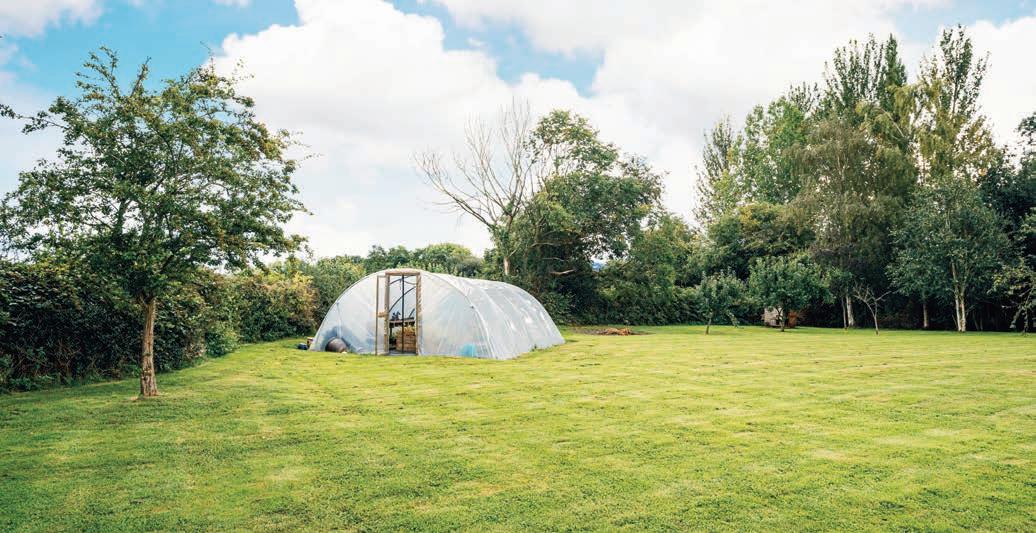 Approached from the roadvia two gates either side of the barn, on to parking and turning space which provides access to the outbuildings. The outside space consists mainly of lawn with the benefit of a polytunnel, an orchard with a variety of fruit trees and a patio area ideal for alfresco dining. The grounds extend to approximately 1.5 acres in all and there is space to make a small paddock if required.