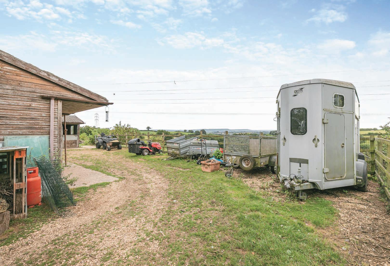 Equestrian enthusiasts or hobby farmers will appreciate the L-shaped Loddon stable block, which includes five stables, all equipped with electric and water drinkers. Additionally, there are three Loddon pony boxes, currently used for housing pigs, along with a tack room with power and water, two greenhouses, and another stable at the front, now repurposed for storage. A separate timber office with power, lighting, and a BT point provides a convenient workspace. All fields have water connected, though not all are suitable for horses. There is also an overgrown menage, which would require restoration.