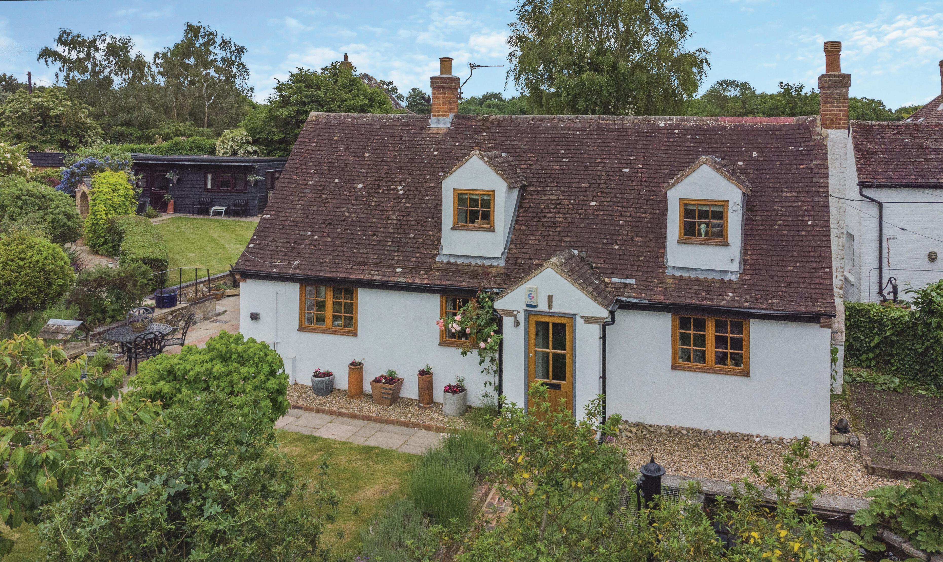 This picturesque cottage is set on a large parcel of land and is surrounded by its magnificent garden within the small, rural, hamlet of Kevington which has glorious panoramic outlooks into its adjoining meadows and woodland. Alongside other properties in the hamlet, it had once been a worker’s cottage on the Kevington Estate. Built around 1837 it has increased in size and been meticulously maintained throughout its history and has been the much loved home for the current owners for the past twenty-two years.