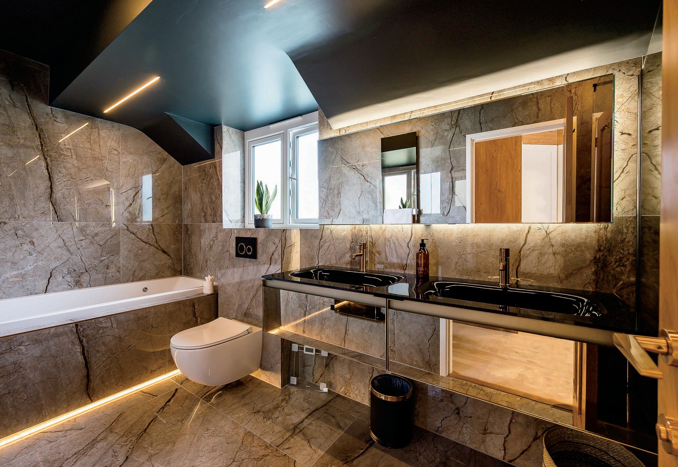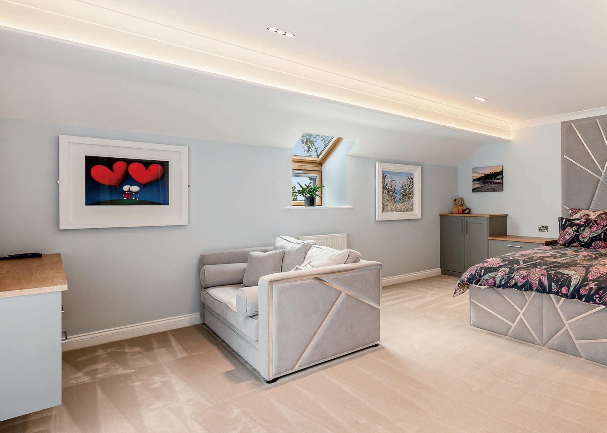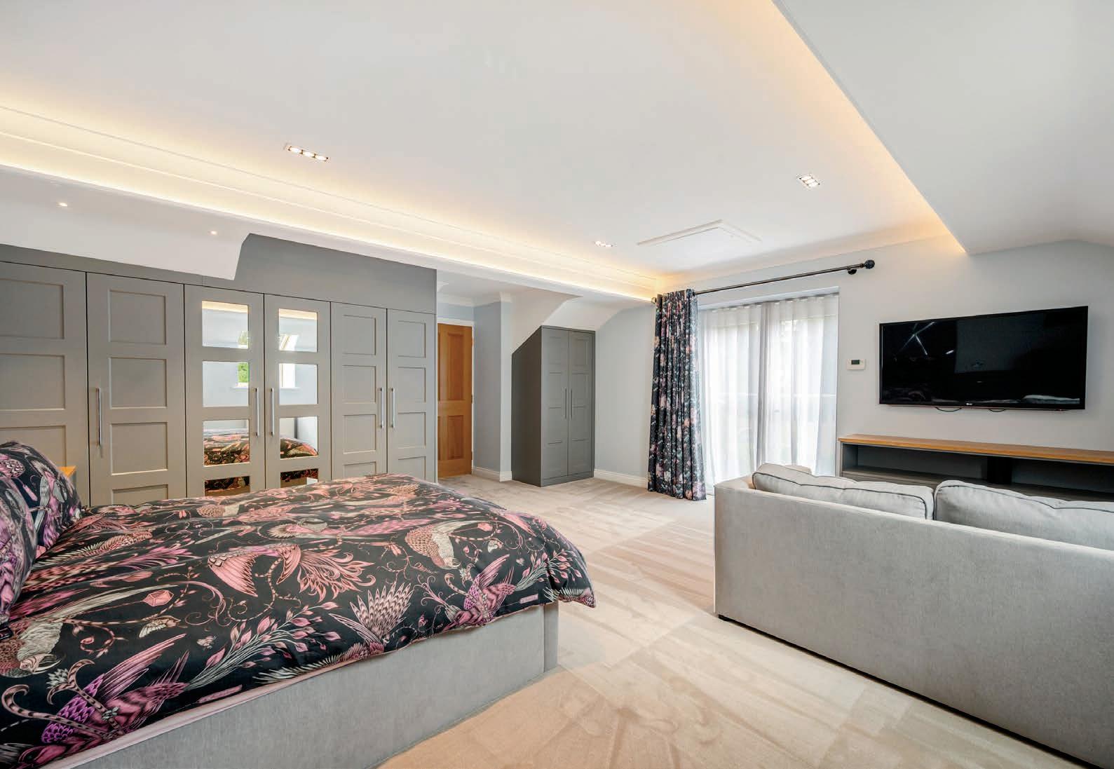 On the Ground Floor there is under floor heating throughout and has an Entrance Hall with composite door to the front, Amtico floor, under stairs plant room with monitored ventilation and circulation, Study with fitted office furniture, 2pc Cloakroom with hand wash basin and dual flush WC, Living Room with feature media wall with Venetian plaster finish with in built shelving, feature electric fire and French doors to the garden. The Living Dining Kitchen is both contemporary and class with a range of base and eye level units, Bora cooking appliances with an induction hob with suck down extraction, electric double oven, sink unit with Quoooker hot mixer tap, tall integrated fridge and freezer, composite granite work surface area with matching upstand, French doors to covered seating area with fire pit. The Utility Room has a range of base and eye level cupboards. sink unit, Quartz work surface area and Asko drying cupboard and matching washing machine and dryer, and external door to the side. Off the Utility is an alternative entrance hall ideal as a guest/teenage entrance that provides access to the garage and has a staircase off that leads up to a secondary Landing Area with a Bedroom off that has a range of built in wardrobes, drawers and bedside tables with French doors to a Juliet balcony.