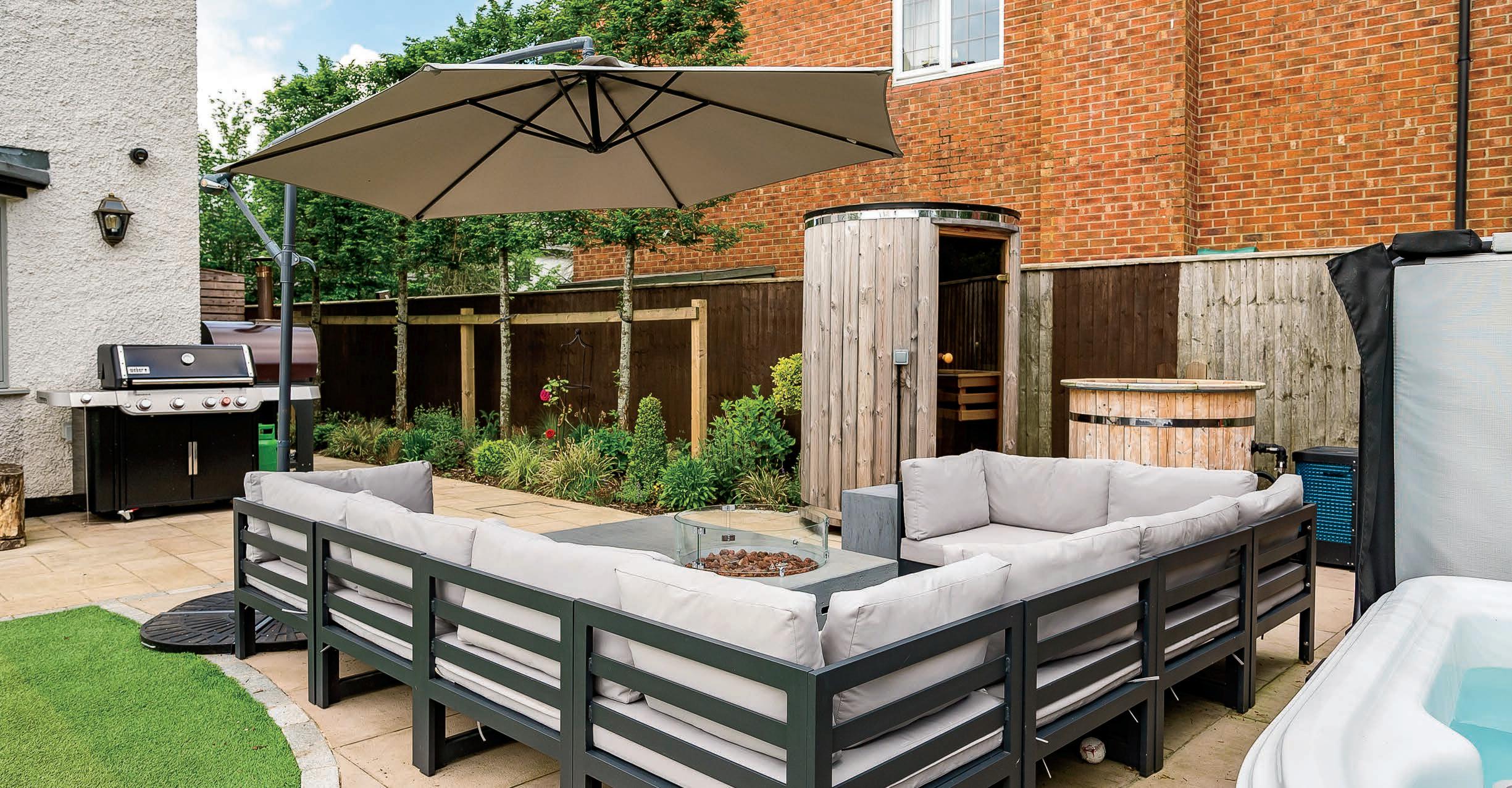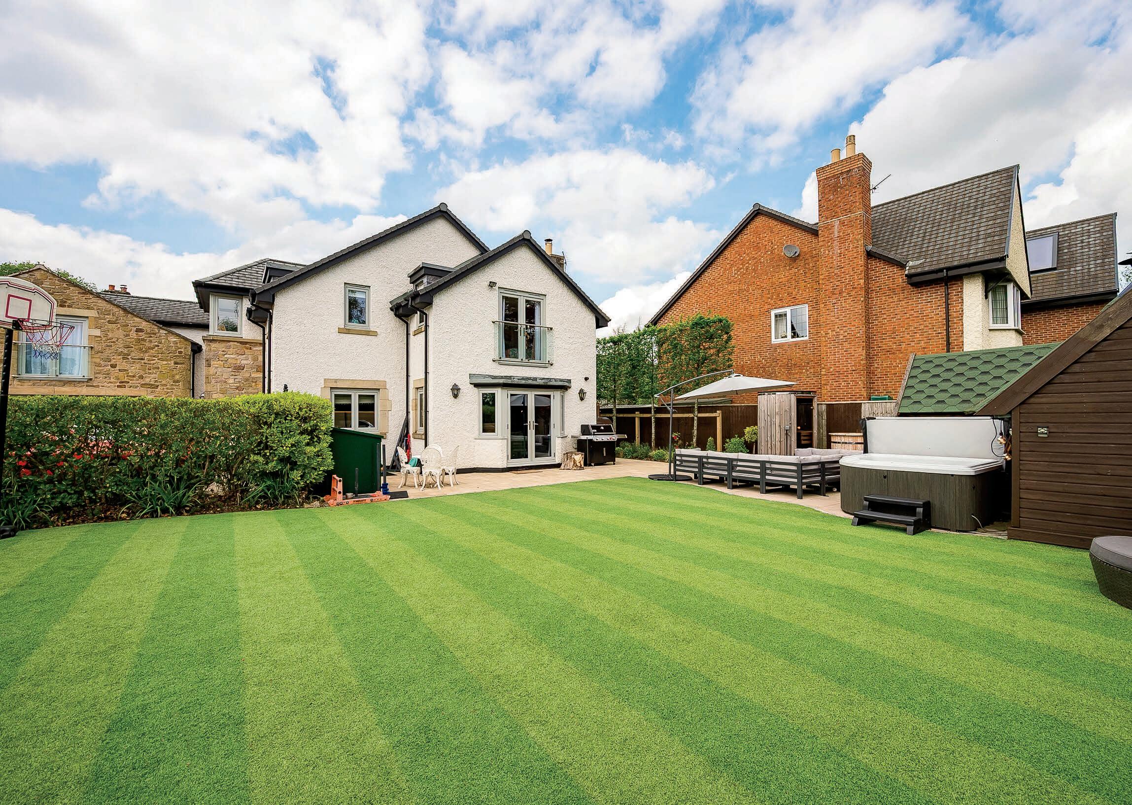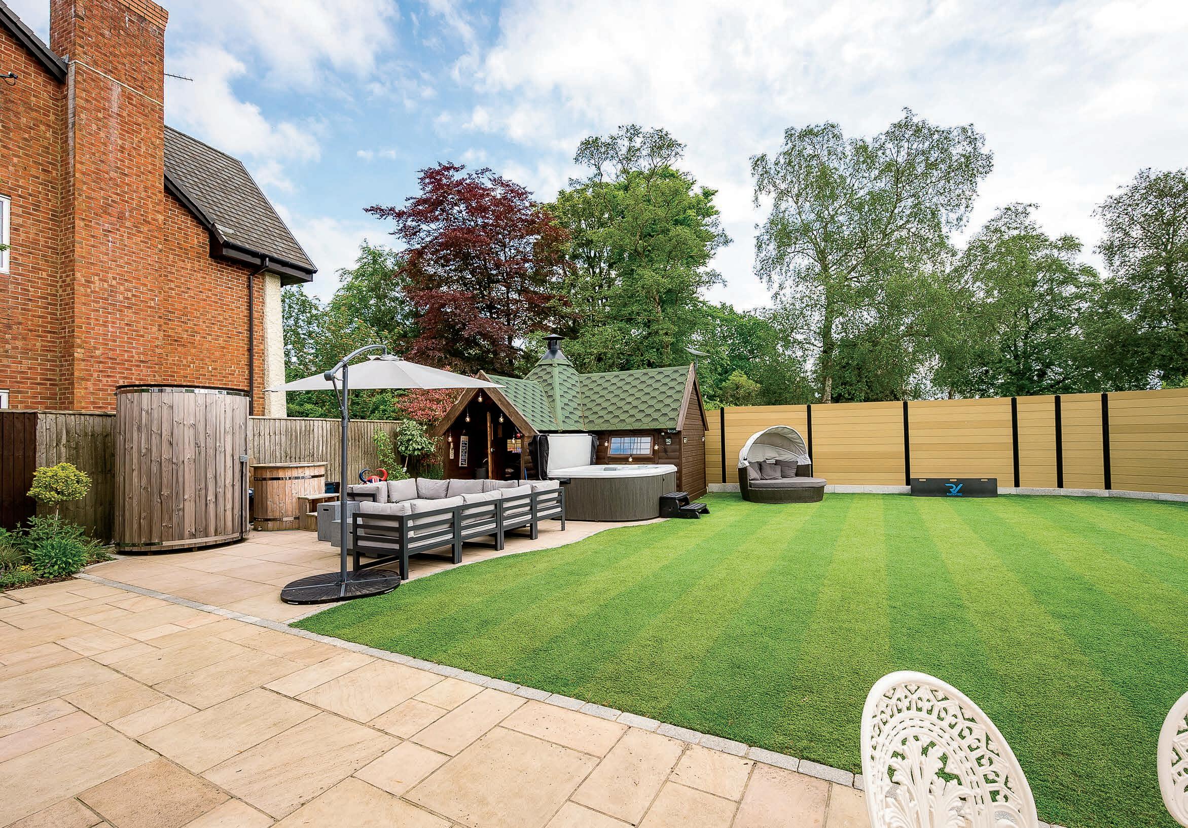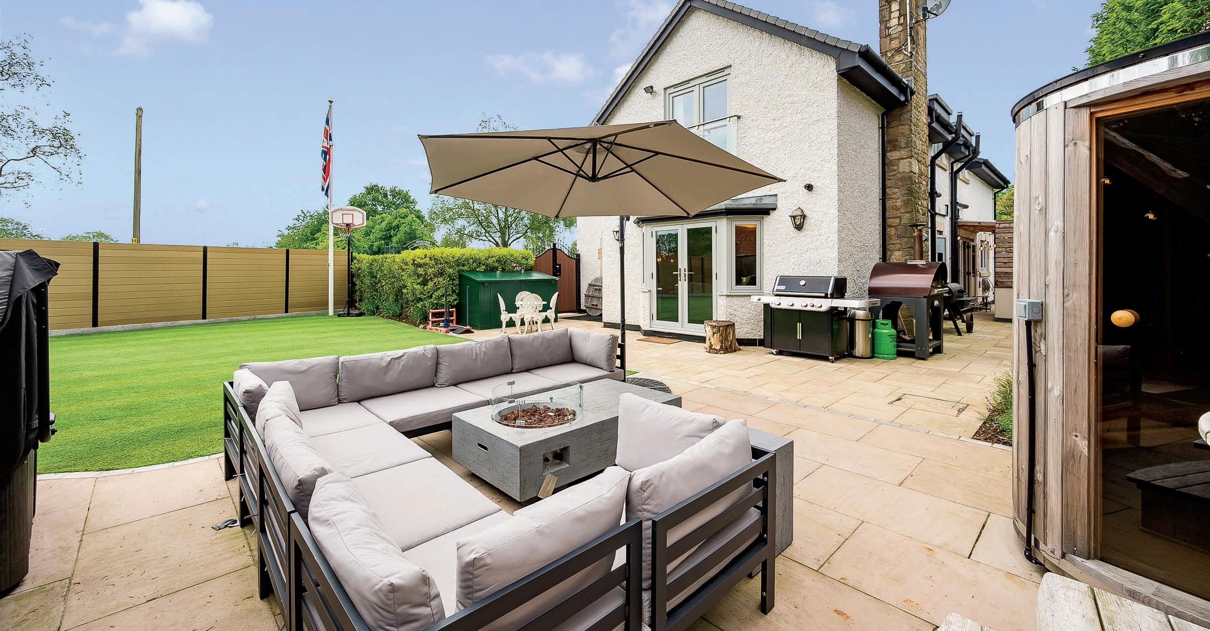 Outside to the Front there is an electric sliding gate that leads in to a generous sized block paved Driveway that in turn leads to an Integral Double Garage that has an electric up and over door, power and light on and houses the wall mounted boiler. The Garden is designed for ease of maintenance with large stone flagged patio and artificial lawned areas and included in the sale are an Alpine Hut with in built seating area, fire pit and bar, outside sauna, temperature controlled ice bath and hot tub.