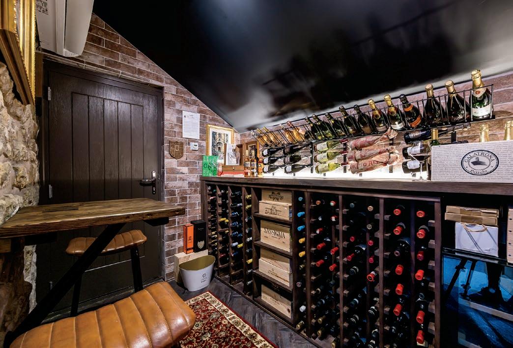 Secretly hidden away through a secure entrance door is a most awe-inspiring temperature controlled Wine Cellar with fitted wine rack, shelving and bar together with two person table, an ideal retreat to escape to!
