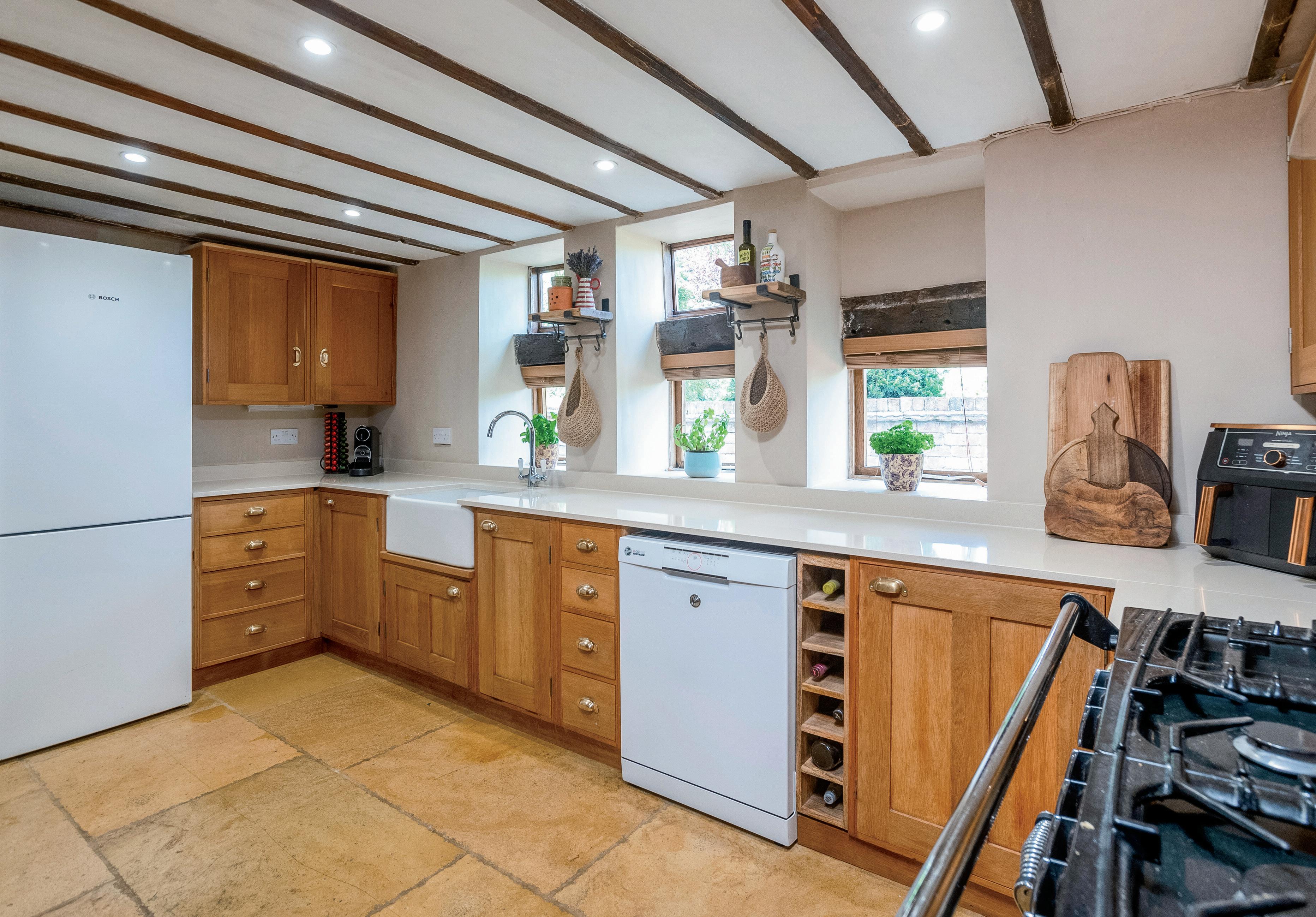 Court Farm is beautifully restored and retains many of the original features. An Elm front door leads into the hall that spans from the front to the rear of the house with a door to the rear and garden, wooden panelling halfway up the walls, exposed beams, tiled floor and an overwhelming sense of character. The dining room is well proportioned with dual aspect windows, pretty views of the village, a wooden window seat, exposed beams, flagstone floor, built in storage, and a large inglenook fireplace with wooden lintel over and wood burner set in. The sitting room has a wooden floor, part stone walls, large bay window that faces the front garden and a fabulous inglenook fireplace with wooden lintel and wood burner. The kitchen/breakfast room has dual aspect windows, ample storage, Quartz worktops, LPG Rangemaster oven and Belfast sink. The kitchen has a real farmhouse feel with plenty of charm and character. The downstairs bathroom is modern and well presented with a shower, basin, W.C and Velux window. From the kitchen you lead into part of the house that could be a separate annexe or part of the main house. Details of this section are under annexe.